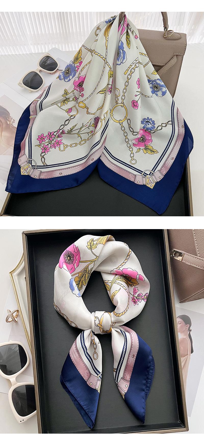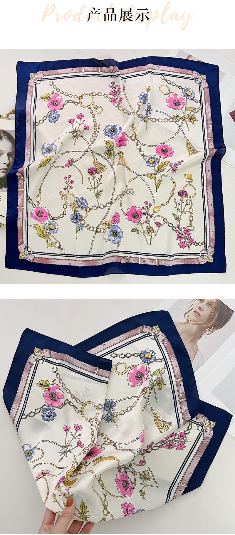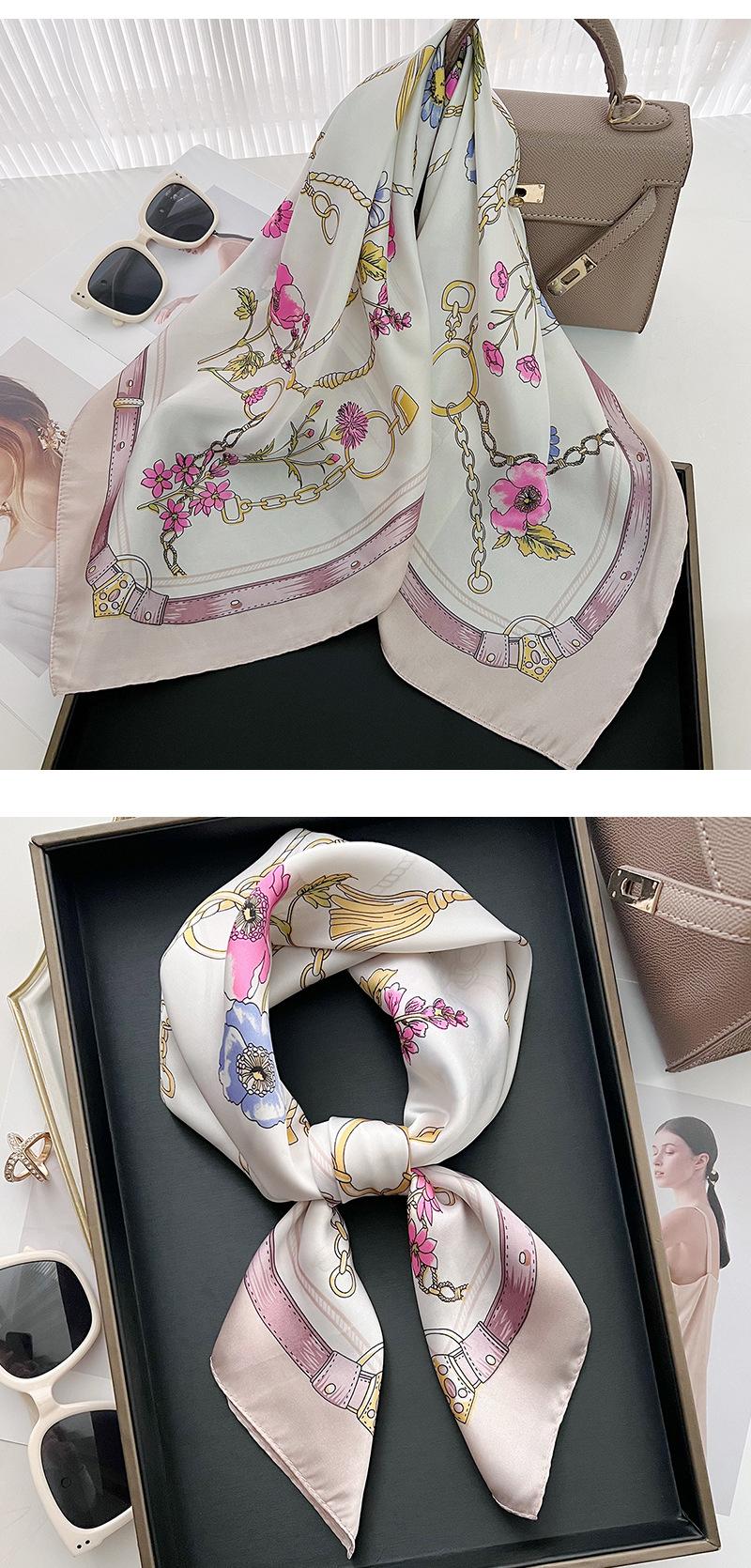 2025 Nuevo Pañuelo Cuadrado Pequeño de Seda con Cadena Británica y Flores, Moderno, Elegante, Combinable con Todo, 70 cm, Pañuelo Decorativo