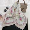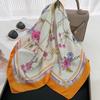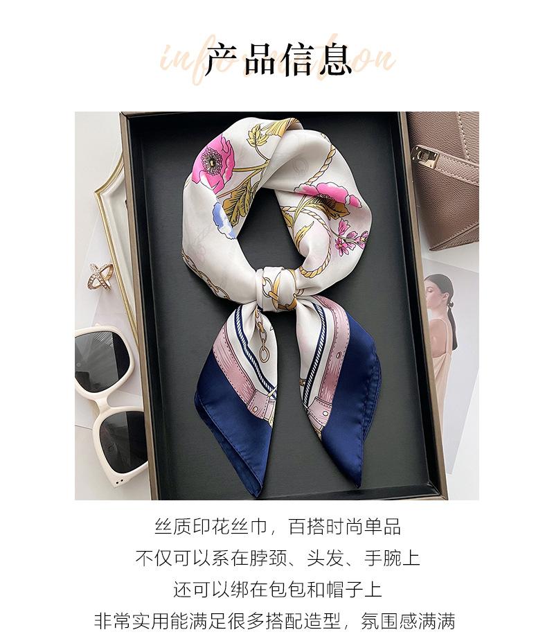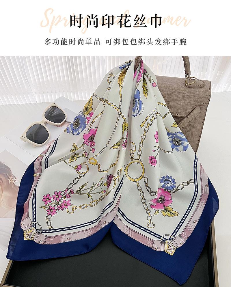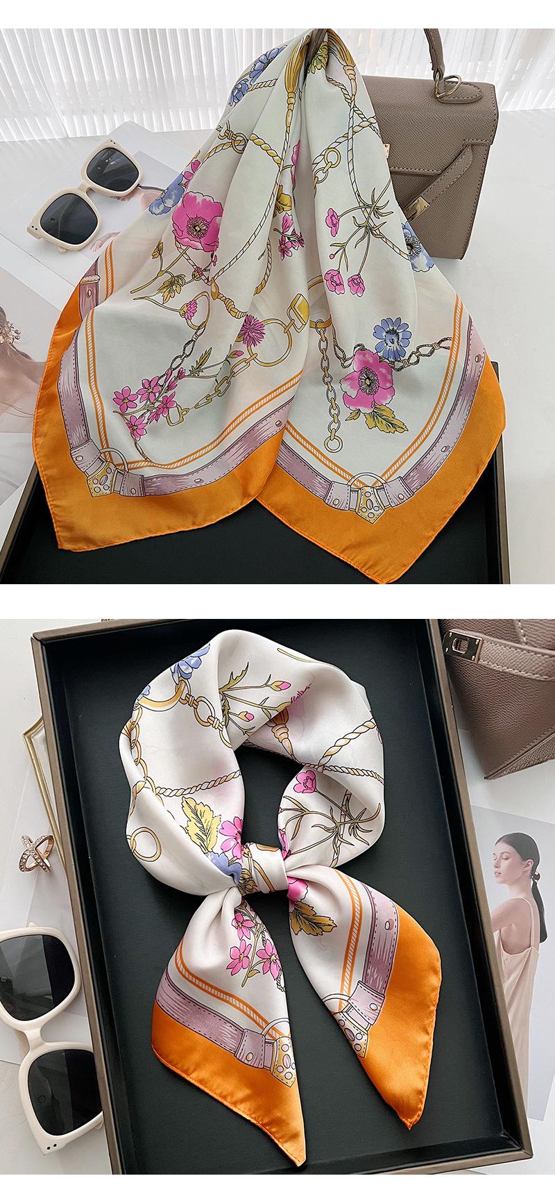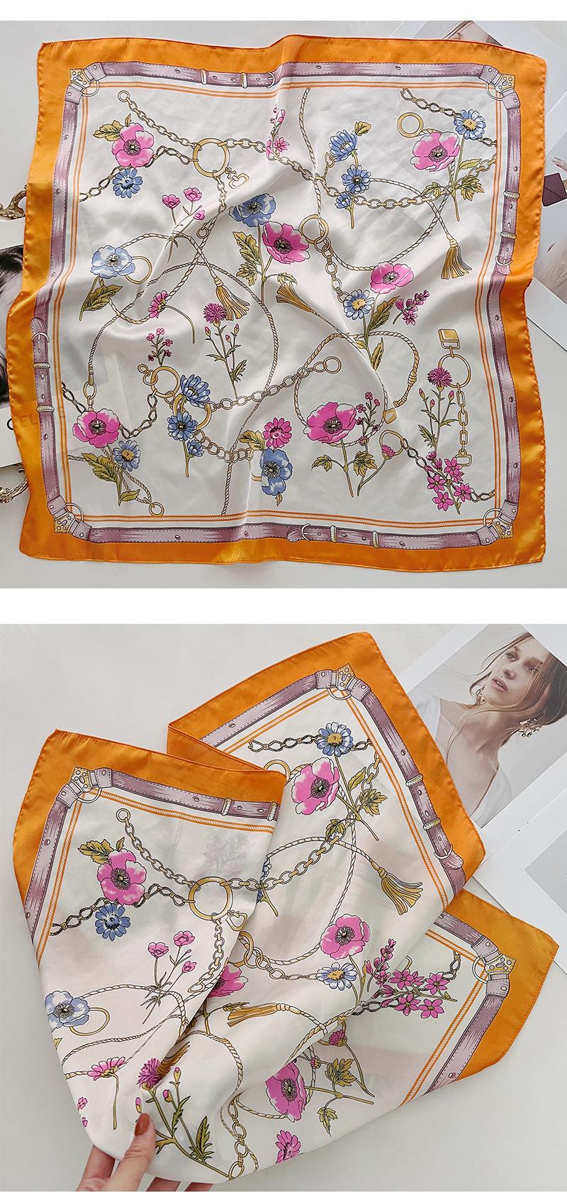 2025 Nuevo Pañuelo Cuadrado Pequeño de Seda con Cadena Británica y Flores, Moderno, Elegante, Combinable con Todo, 70 cm, Pañuelo Decorativo