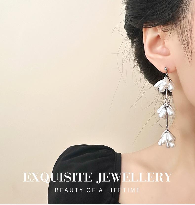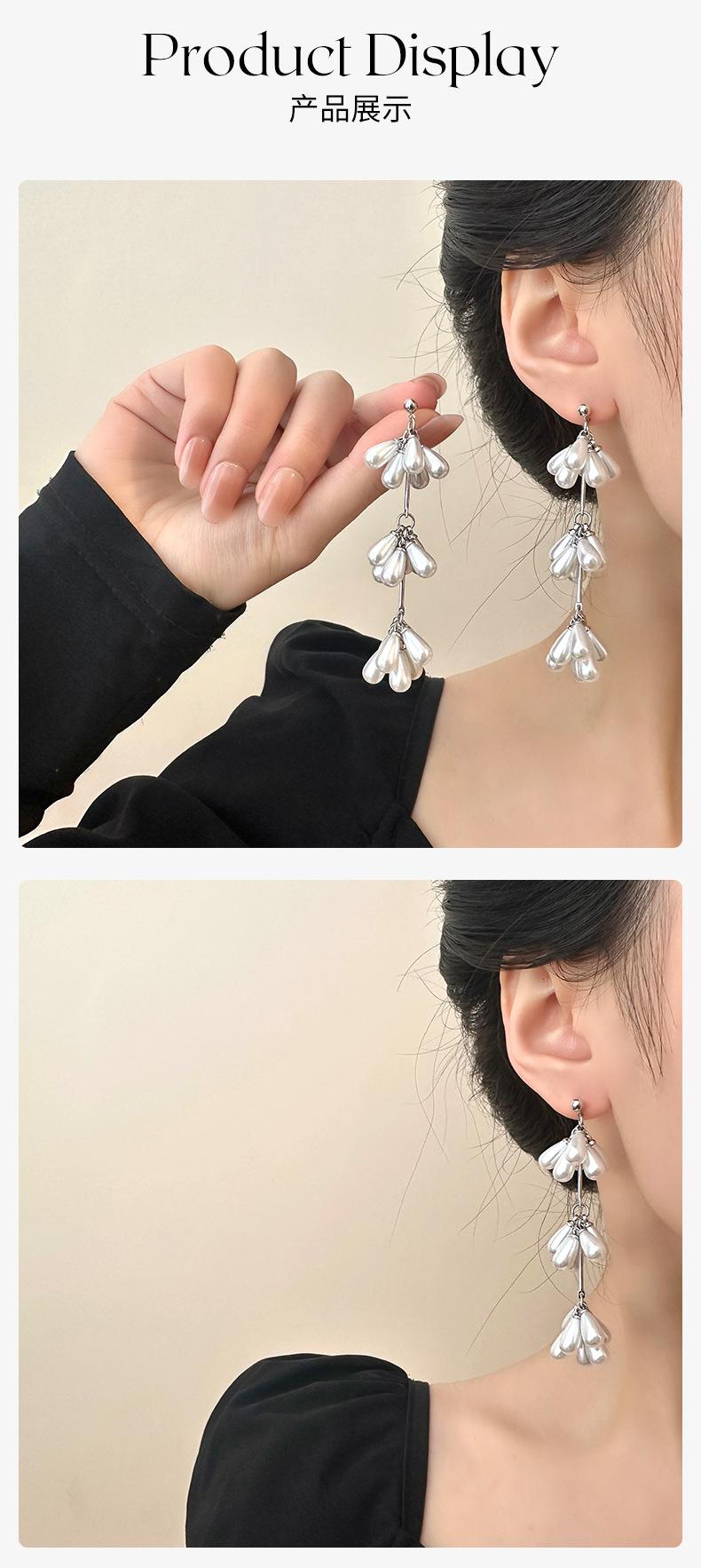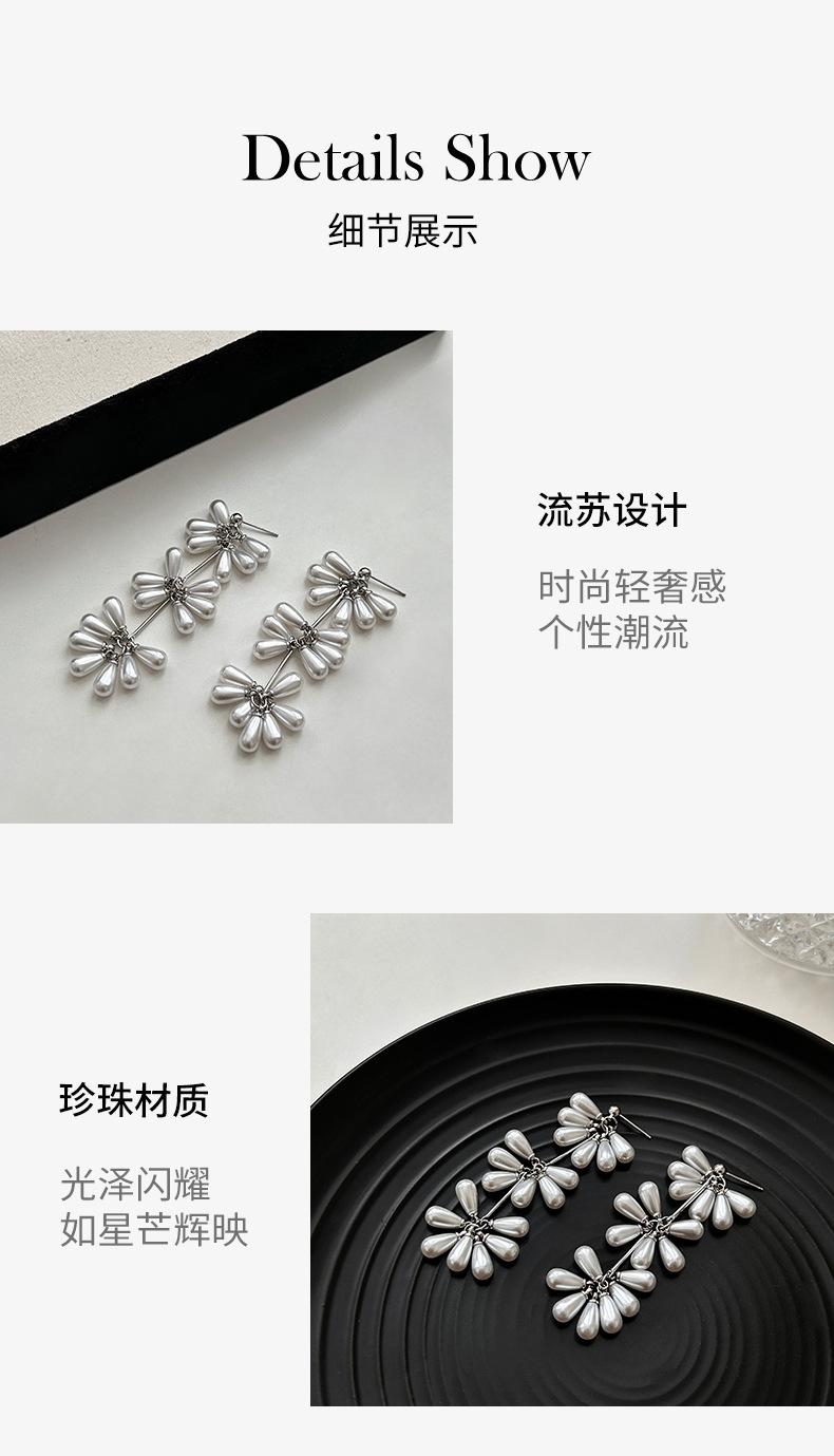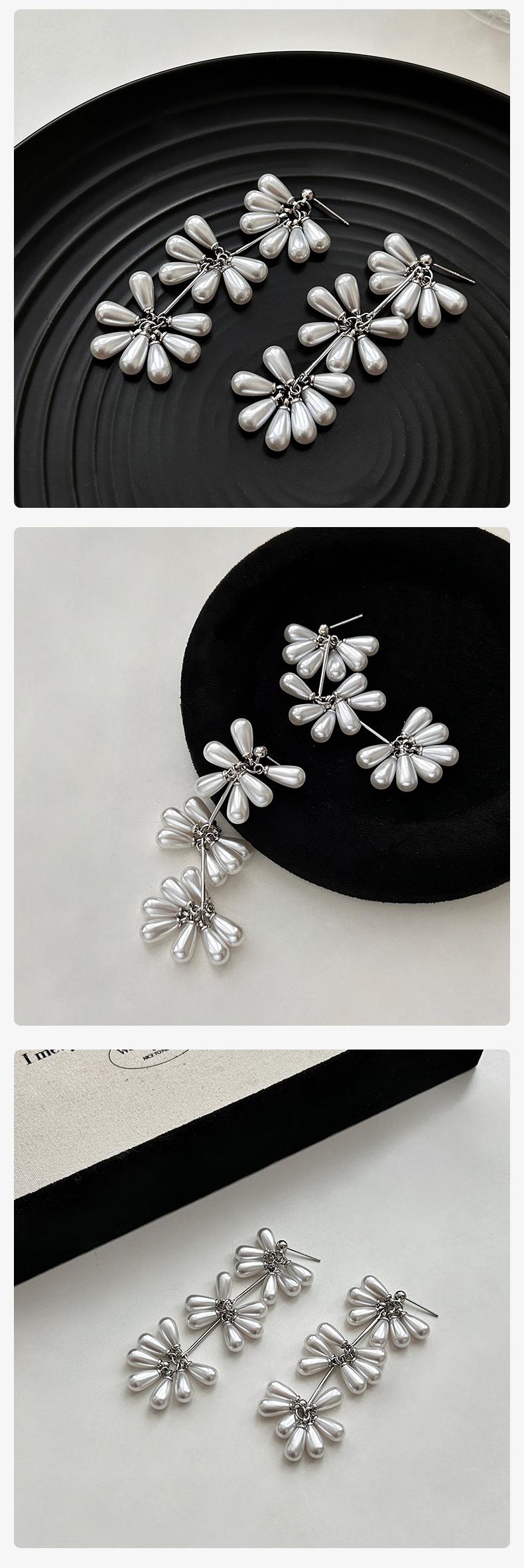 Aretes de Moda con Diseño Nicho Coreano, Aretes de Gota de Agua con Cuentas de Celebridad de Internet, Aretes Simples de Moda de Perla y Flor para Mujer