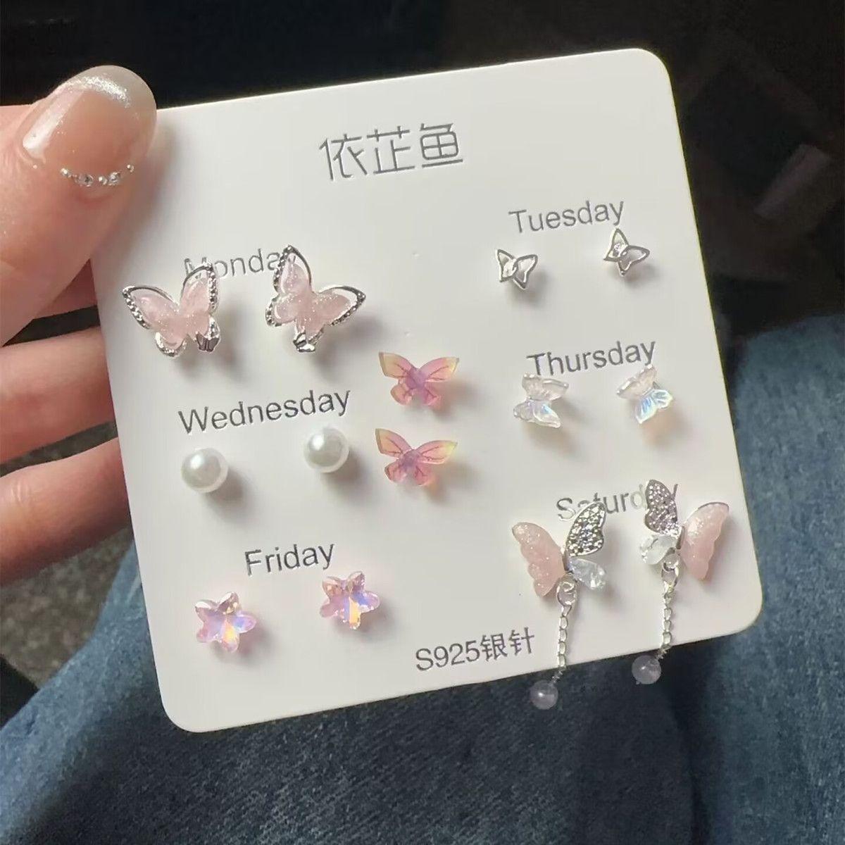 Compra ¡Ah, Aretes Rosas de Primavera Temprana! Set de Pendientes de Lazo de Diamante Delicado Pendientes de Diseño Nicho al por mayor en Joom.pro