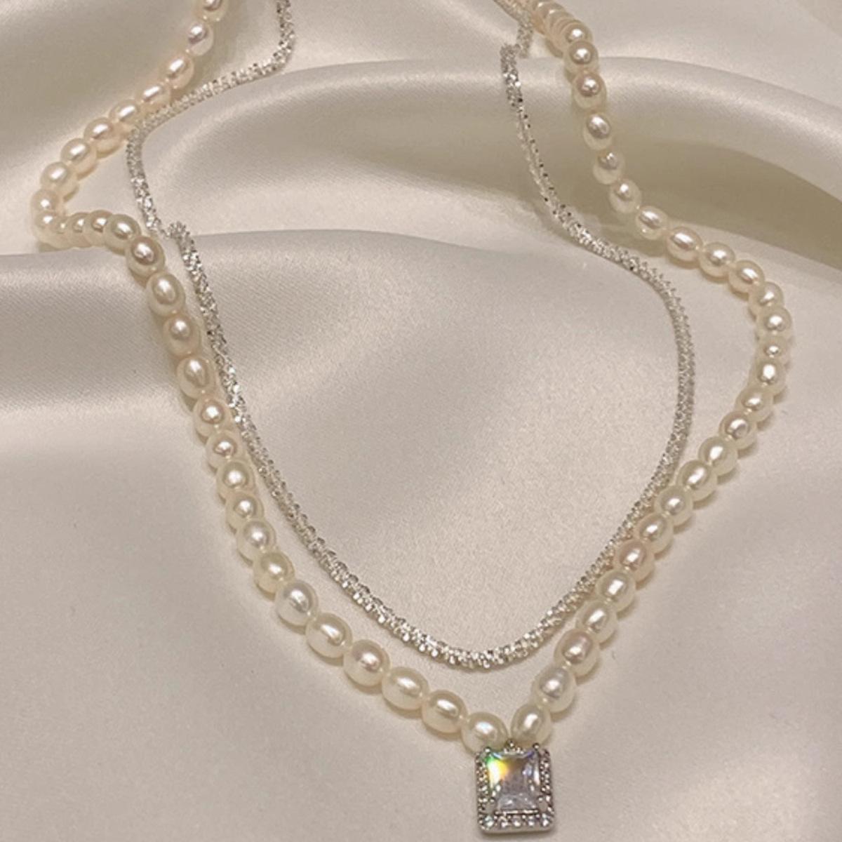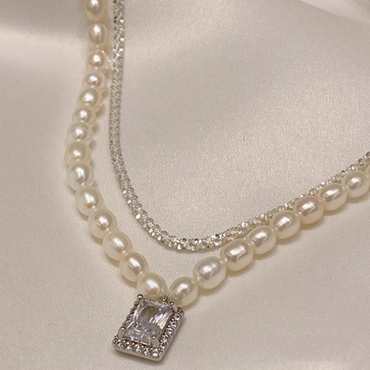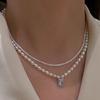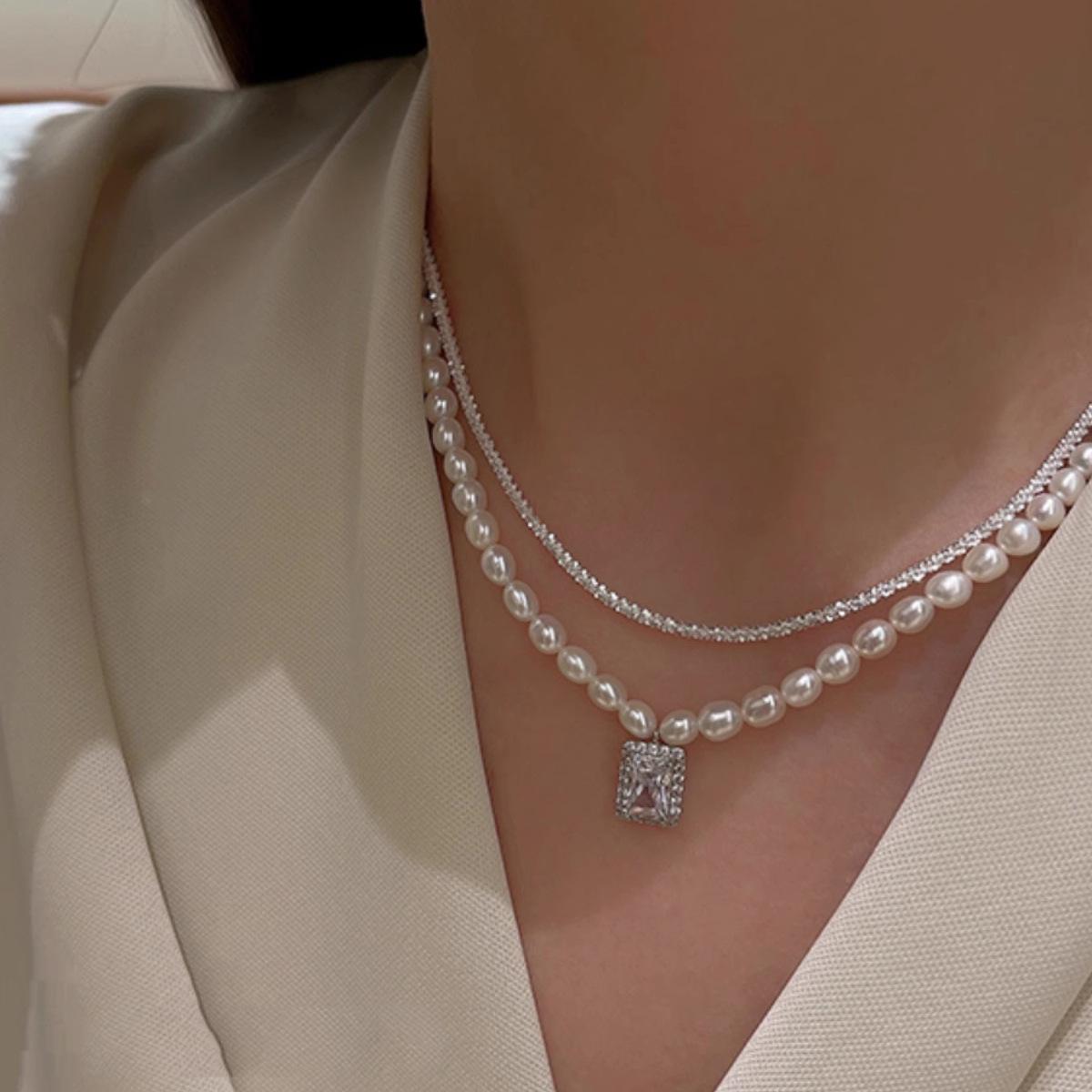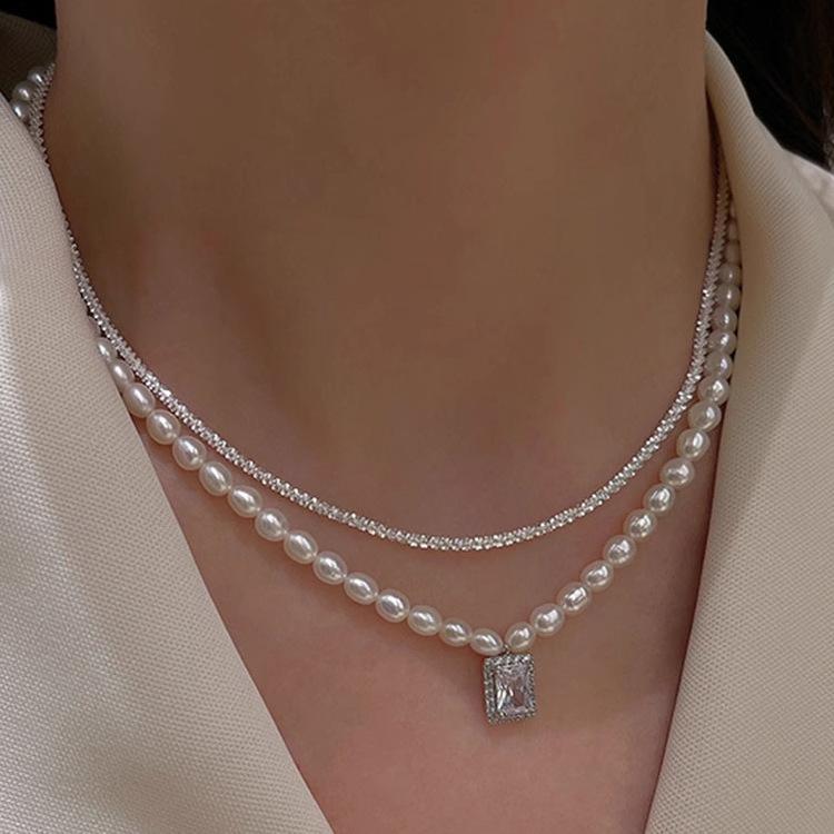 Collar Brillante de Celebridad de Internet Y2K Diseño para Mujer Geométrico Cuadrado Zircón Cadena Clavícula Versátil Elegante Retro Cabello