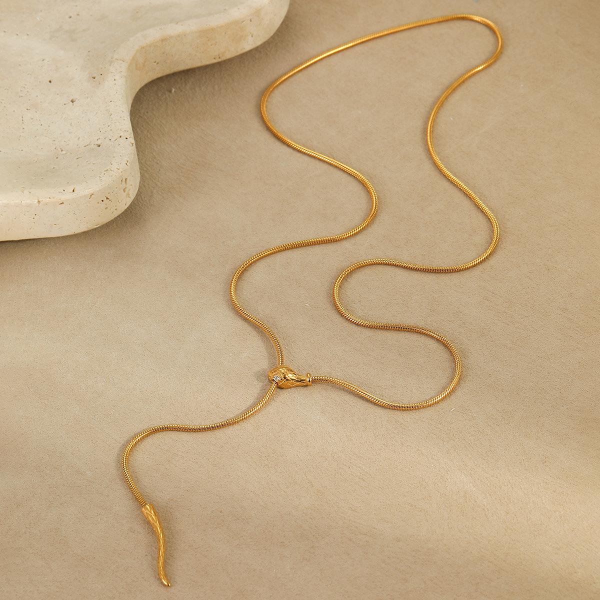 Collar de hueso de serpiente chapado en oro de 18k collar de alto sentido temperamento único nicho moda collar de acero inoxidable venta al por mayor transfronteriza