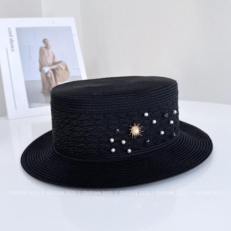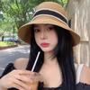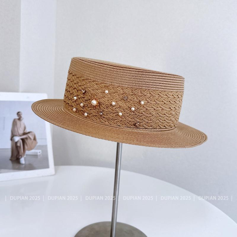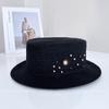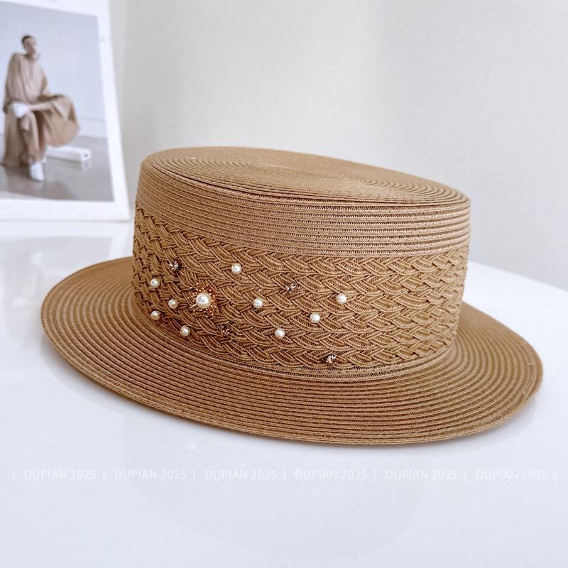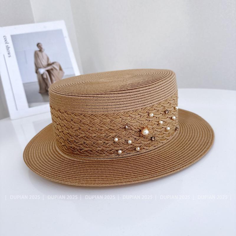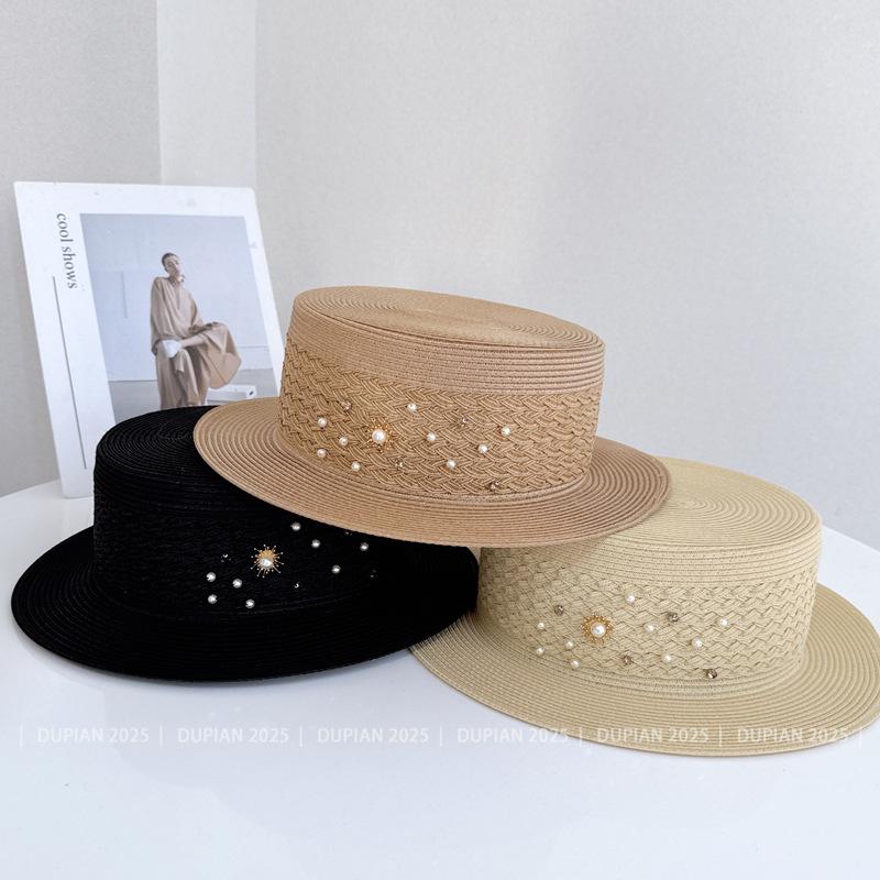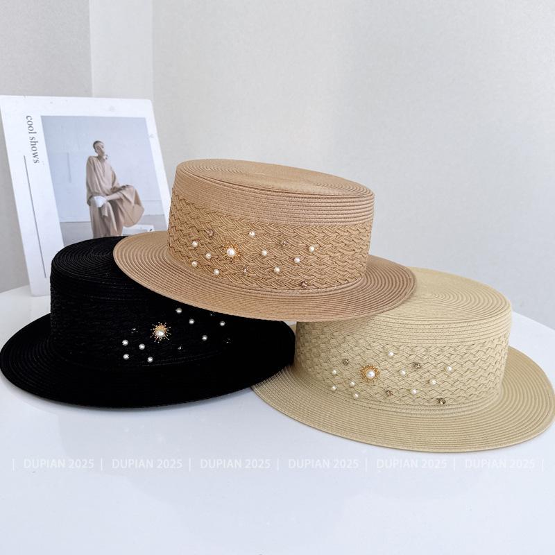 Sombrero de copa plana de flor Sun Pearl de la industria pesada francesa para mujer, sombrero de paja de verano con protección solar, transpirable, con patrón de pez, trenza de PP, sombrero para sombra