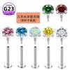 Nombre: Titanio G23 transfronterizo diente interno barra en T tres circonitas uñas labiales modernas y exquisitas estrella de cinco puntas arete curvo para hueso de la oreja joyería piercing