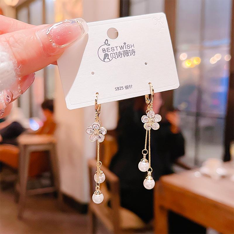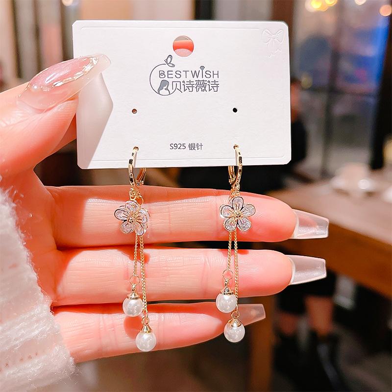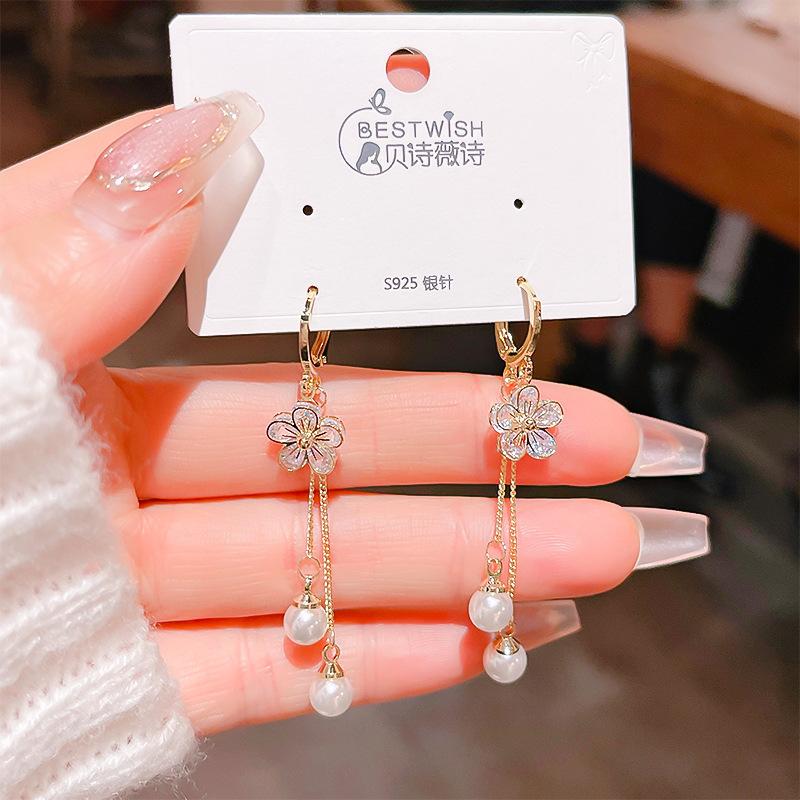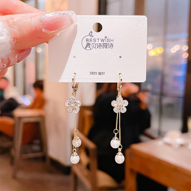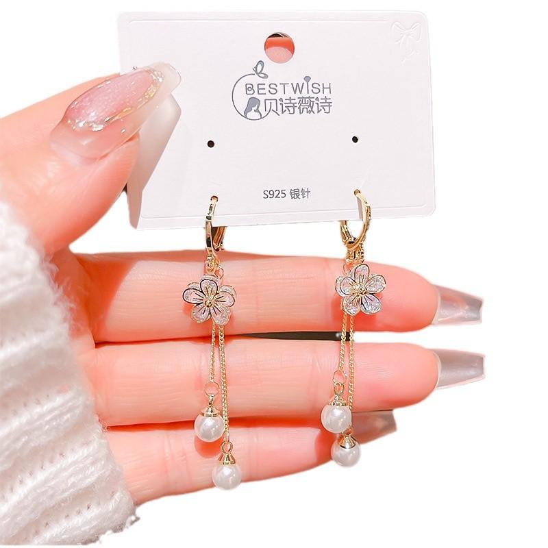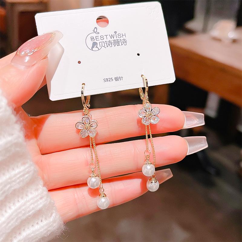 Elegantes pendientes largos con borlas de perlas, pendientes de flores de circonita de lujo ligeros de alta gama para mujer, nueva moda 2024