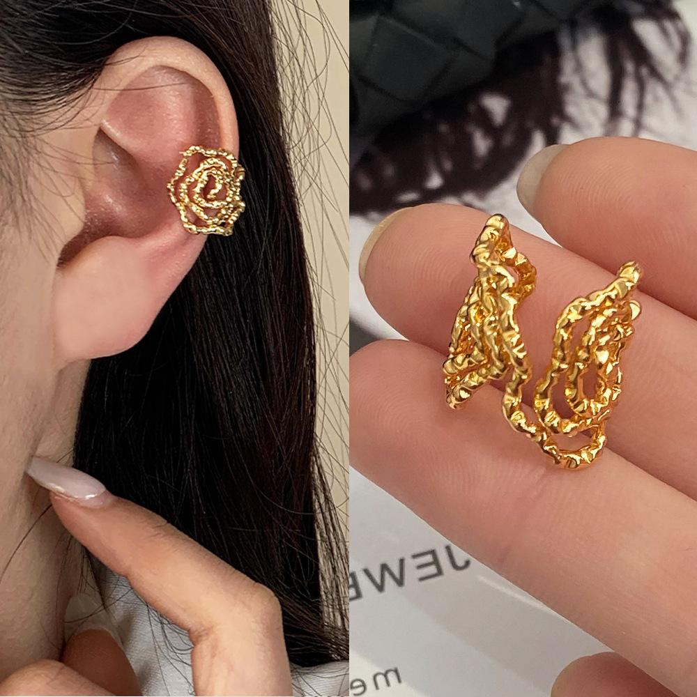 Explosiones transfronterizas textura irregular simple geométrico clip para hueso de la oreja diseño nicho de moda joyería de oreja de alta gama