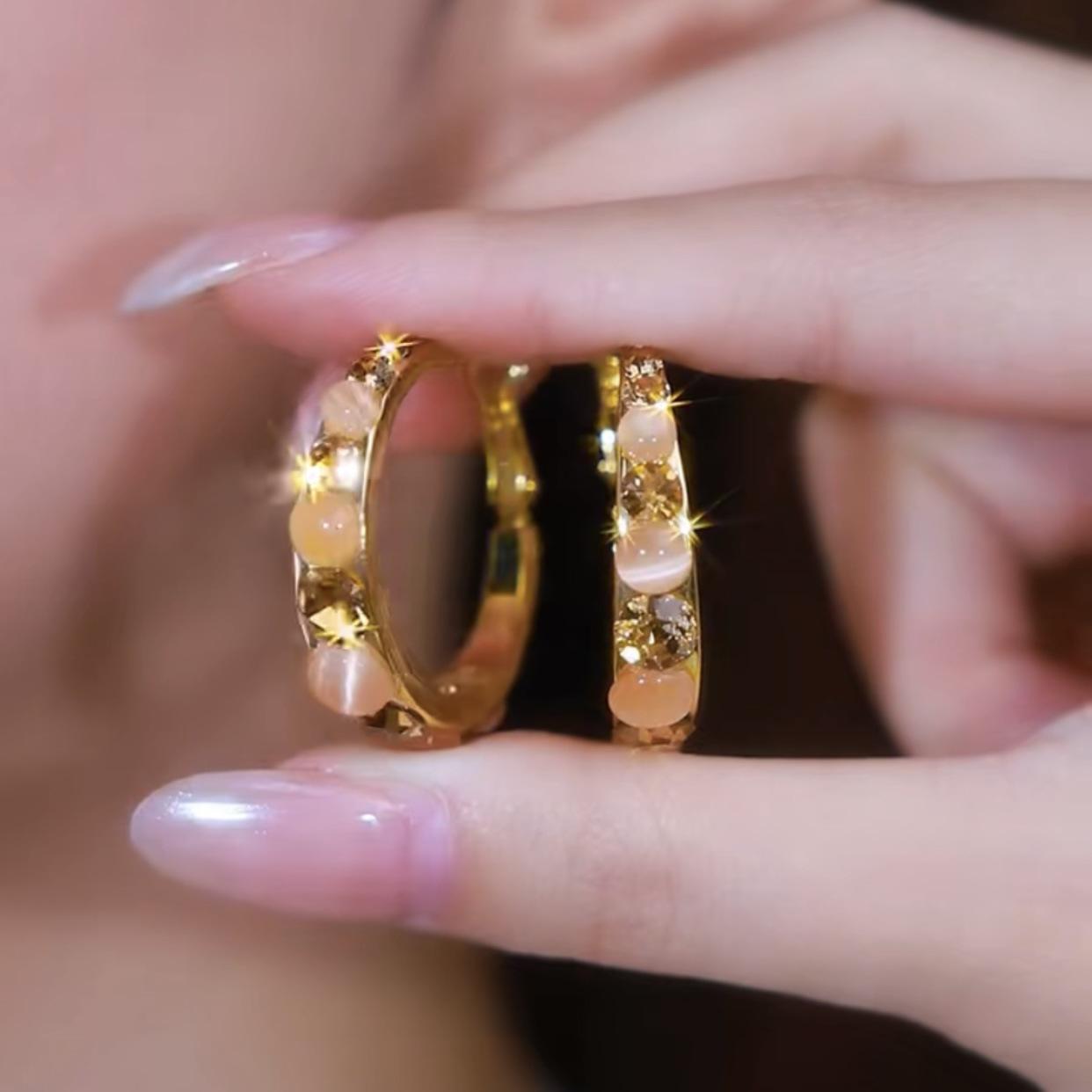 Compra Aretes Vintage Marrones Super Flash Diamante Ojo de Gato Nuevos Combinables Modernos Elegantes de Lujo para Mujer al por mayor en Joom.pro