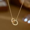 Oro Verdadero Electrochapado Micro-incrustado Zircón Elegante Cadena Clavicular Femenina Diseño de Nicho Sensación Anillo Collar de Cruz Viento Ins Cadena para el Cuello