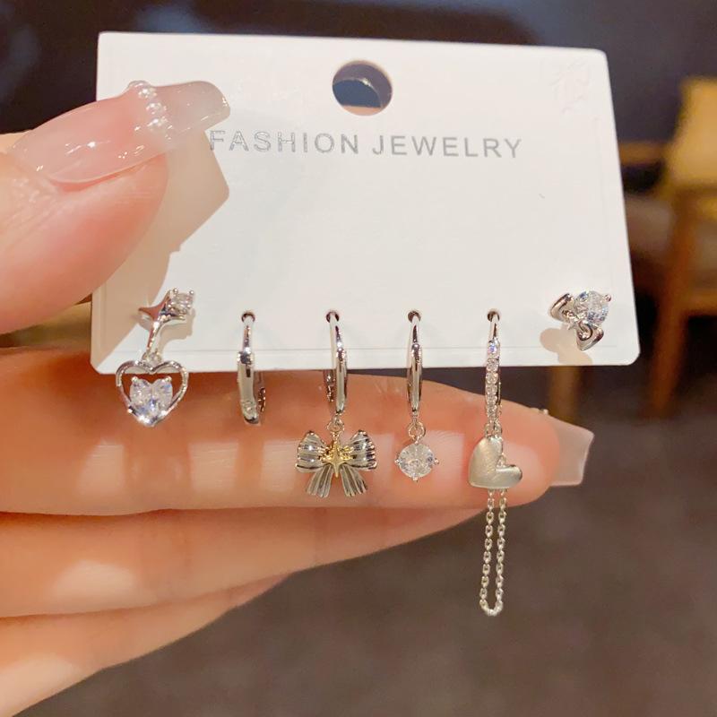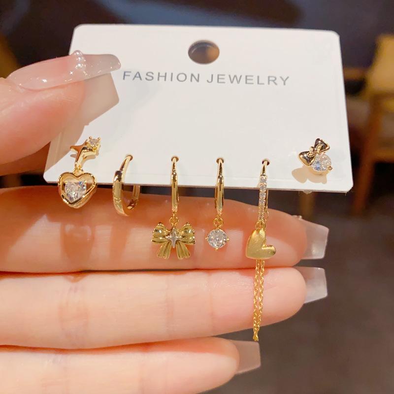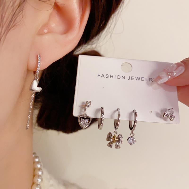 Gold-metal bow peach heart tassel combination (thick gold plating), silver-metal bow peach heart tassel combin...