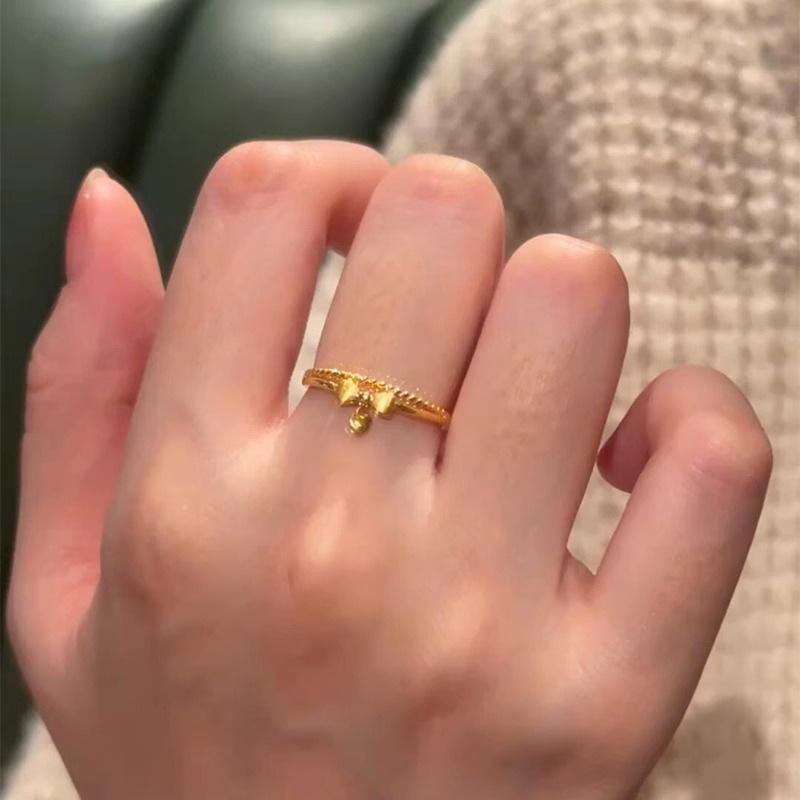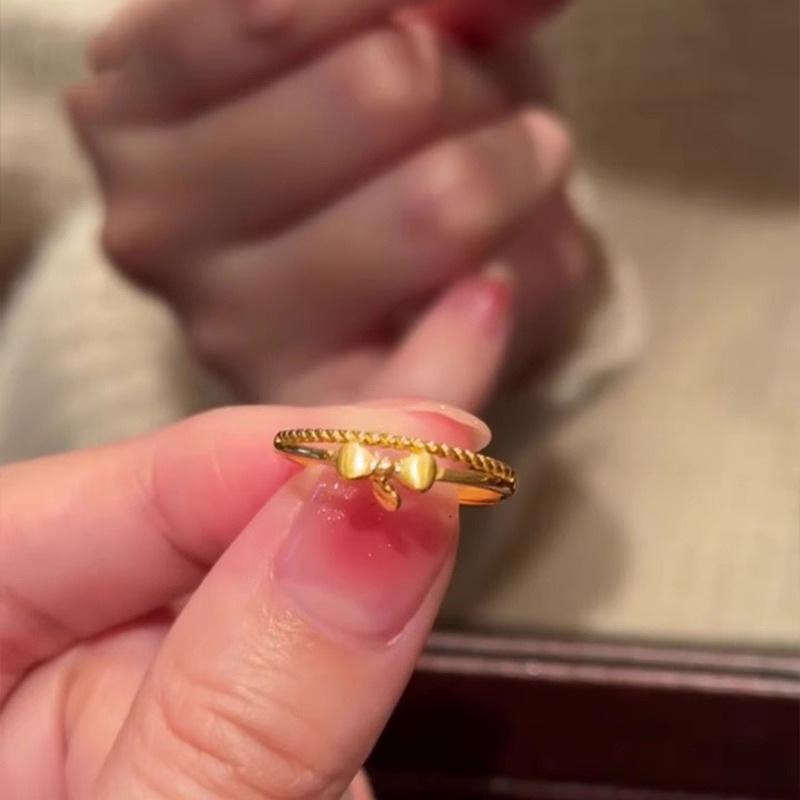 Anillo Lazo Princesa Escape Anillo de Apertura de Corazón de Amor Dorado de Moda de Lujo Ligero para Mujer Exquisito Anillo de Dedo de Alta Gama