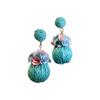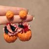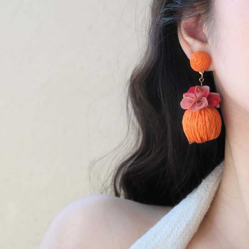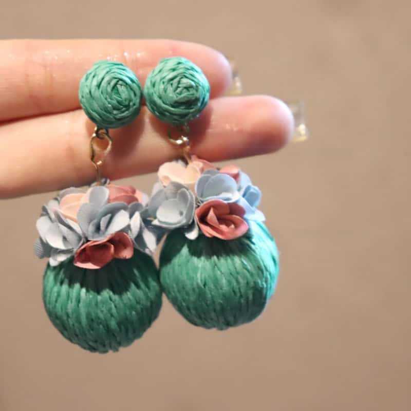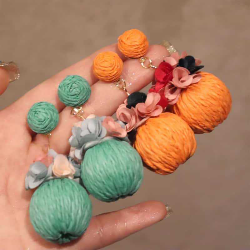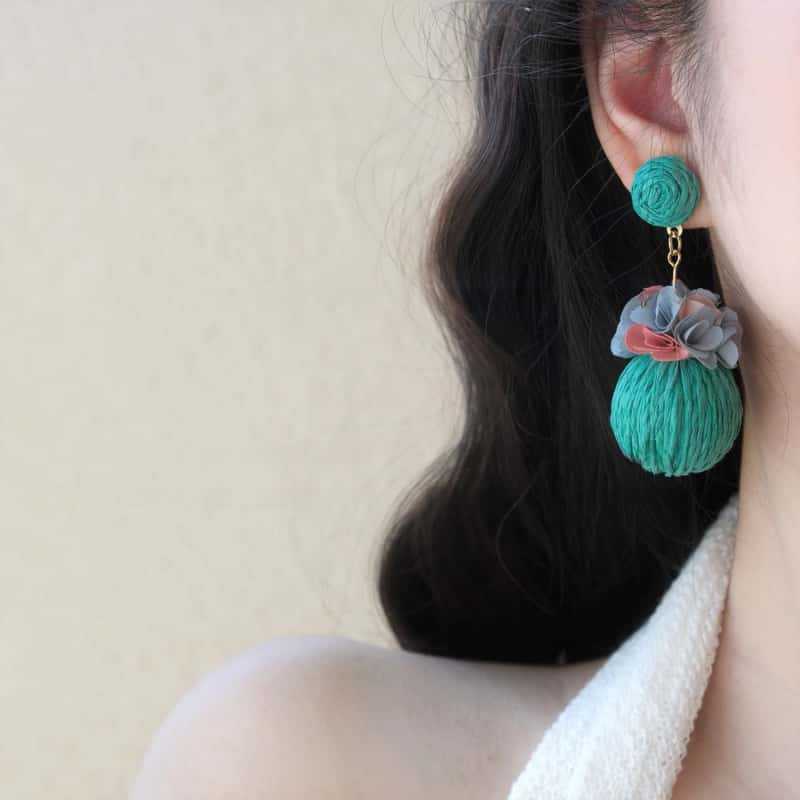 Green flower ball pendant earrings, Orange flower ball pendant earrings
