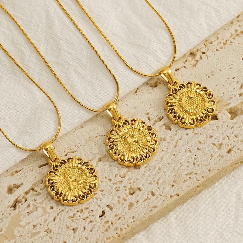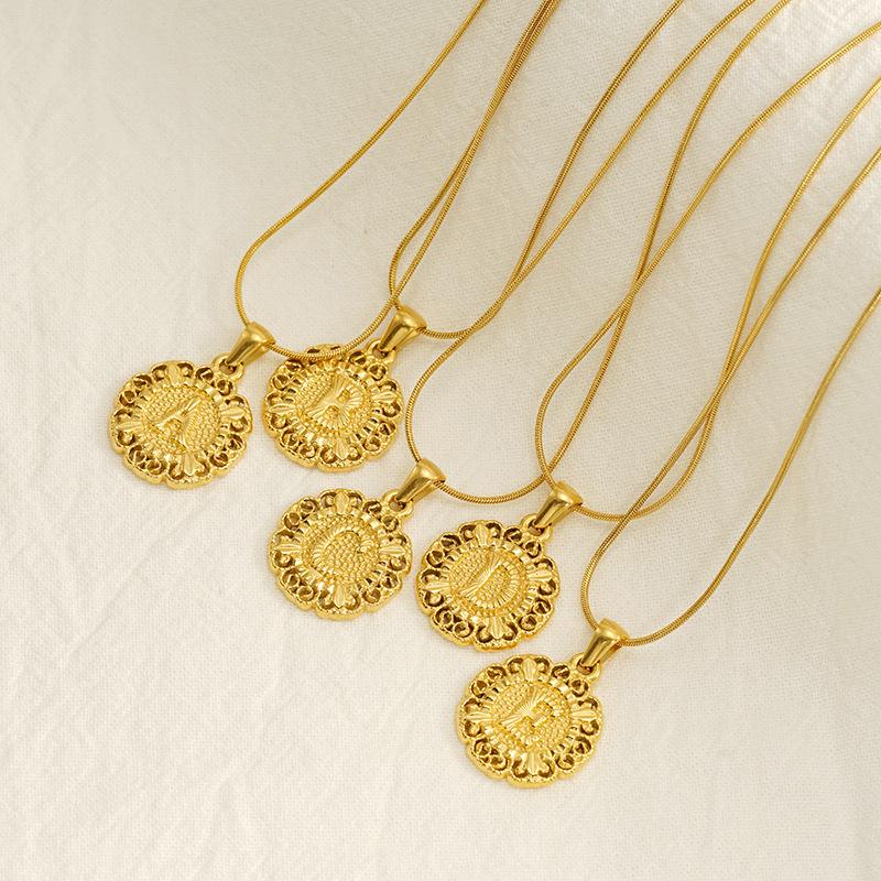 Collar con colgante de letra de acero de titanio de nueva moda europea y americana con cadena de clavícula con diseño en relieve redondo, personalidad versátil para hombres y mujeres.