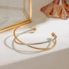 Diseño silencioso sentido oro de 18 quilates acero inoxidable combinación de colores dorado y plateado línea simple pulsera de apertura cruzada venta al por mayor decoración de tendencia