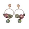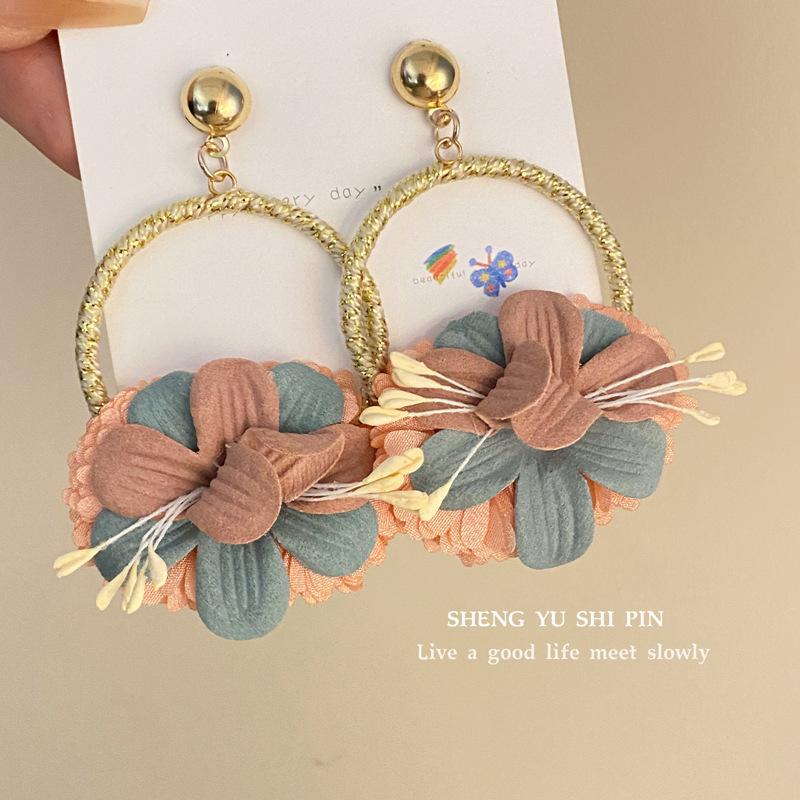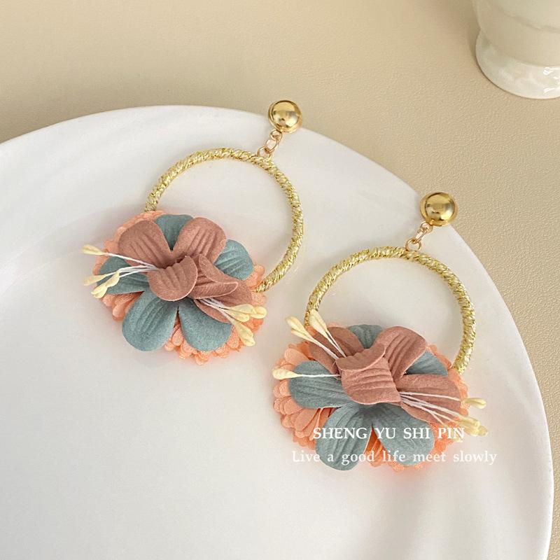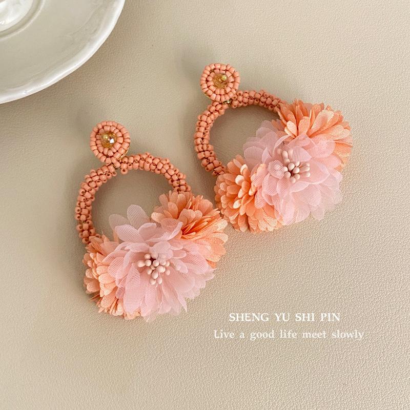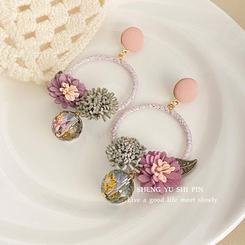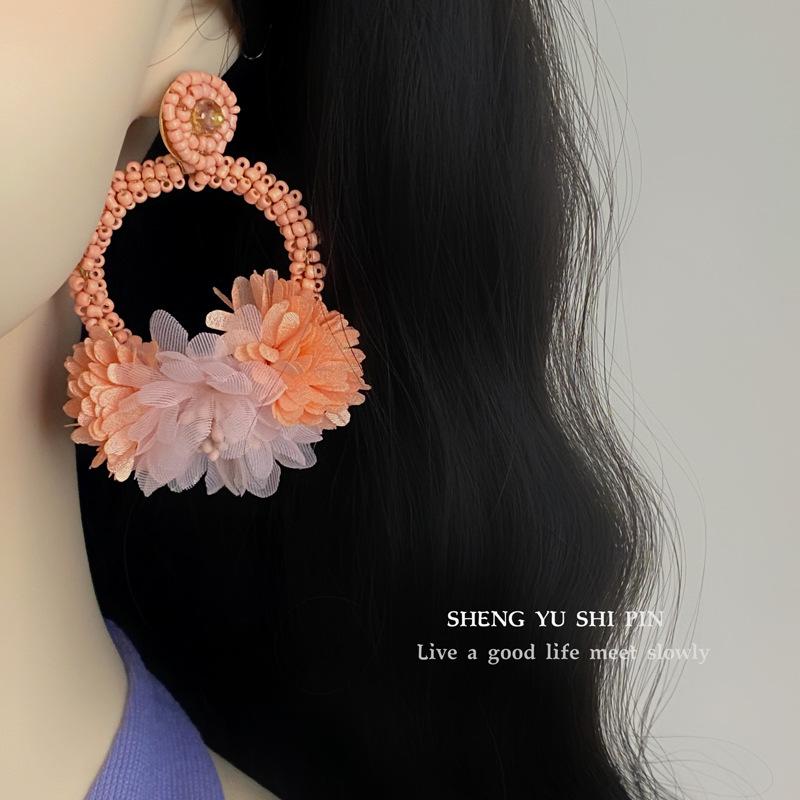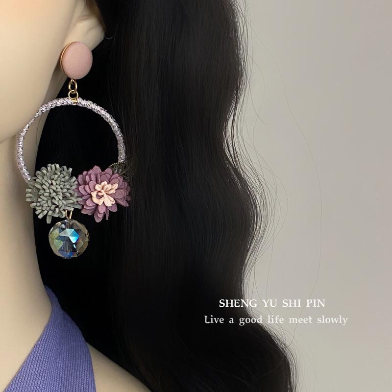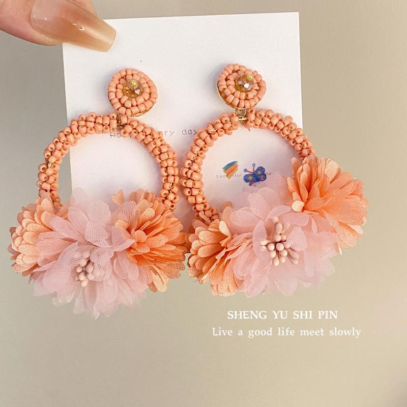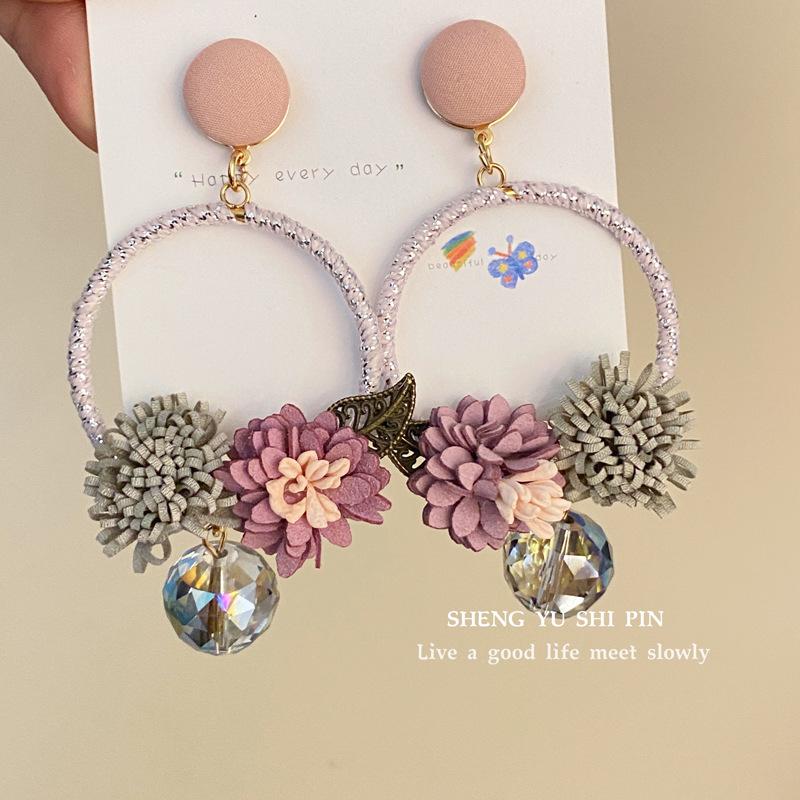 Pendientes de corona de flores hechos a mano, estilo vintage europeo y americano, para mujer, con temperamento personalizado, estilo vacacional largo, joyería de moda para la industria pesada.