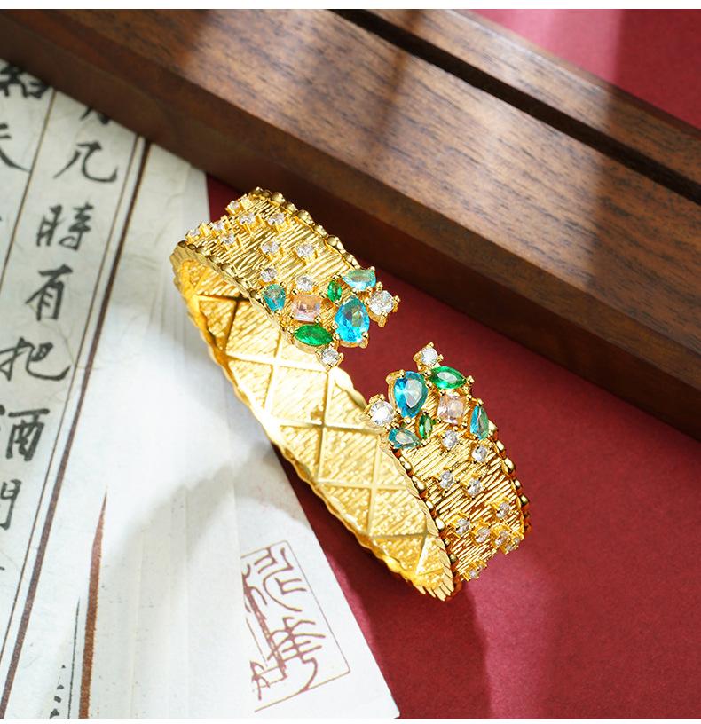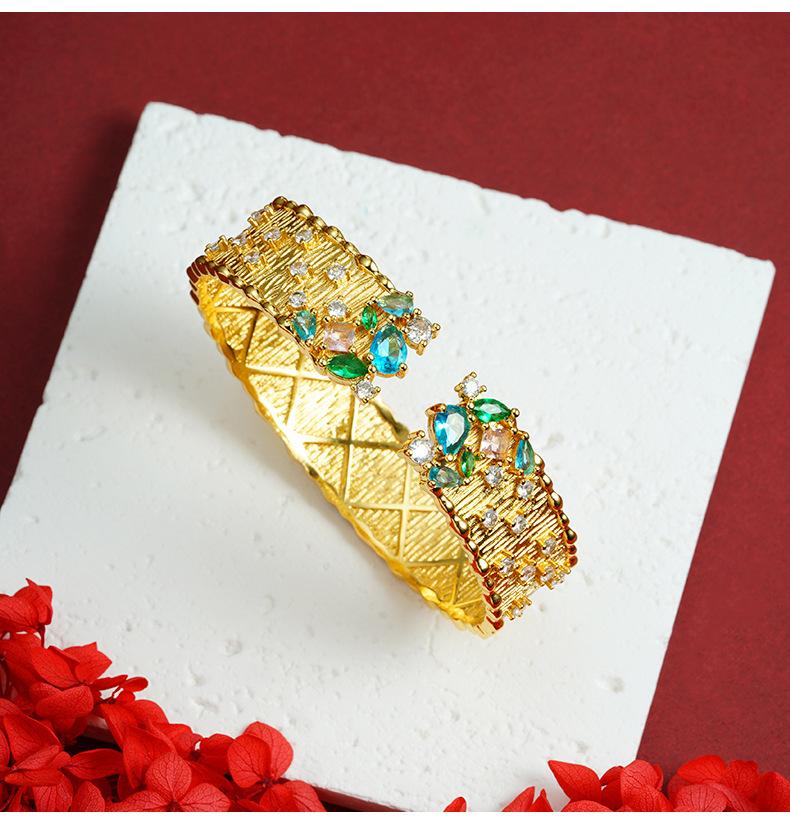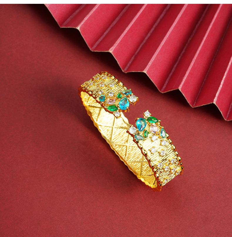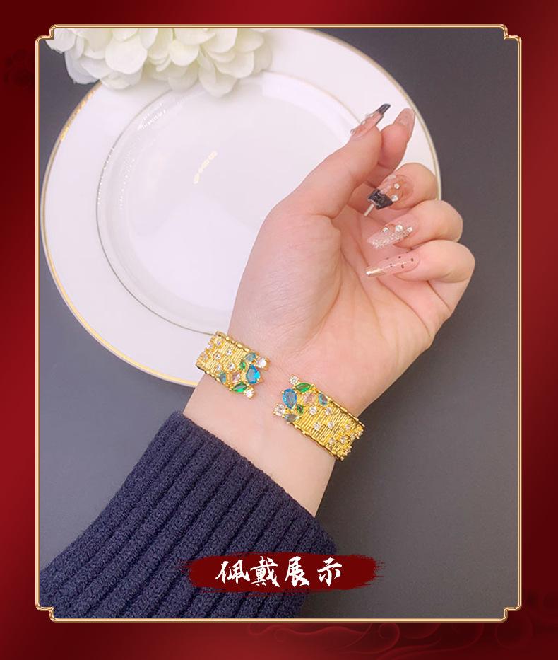 Pulsera de oro arena de Vietnam moda estrellas brillantes incrustadas con diamante pulsera abierta moda femenina sentido de alta gama por mucho tiempo no se desvanece joyería