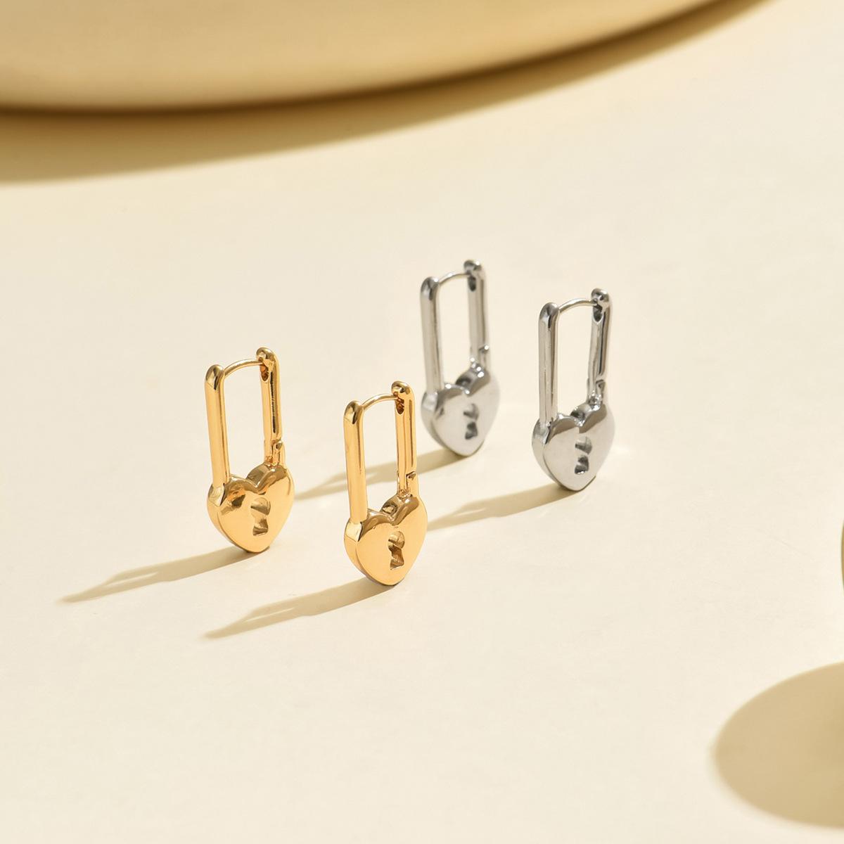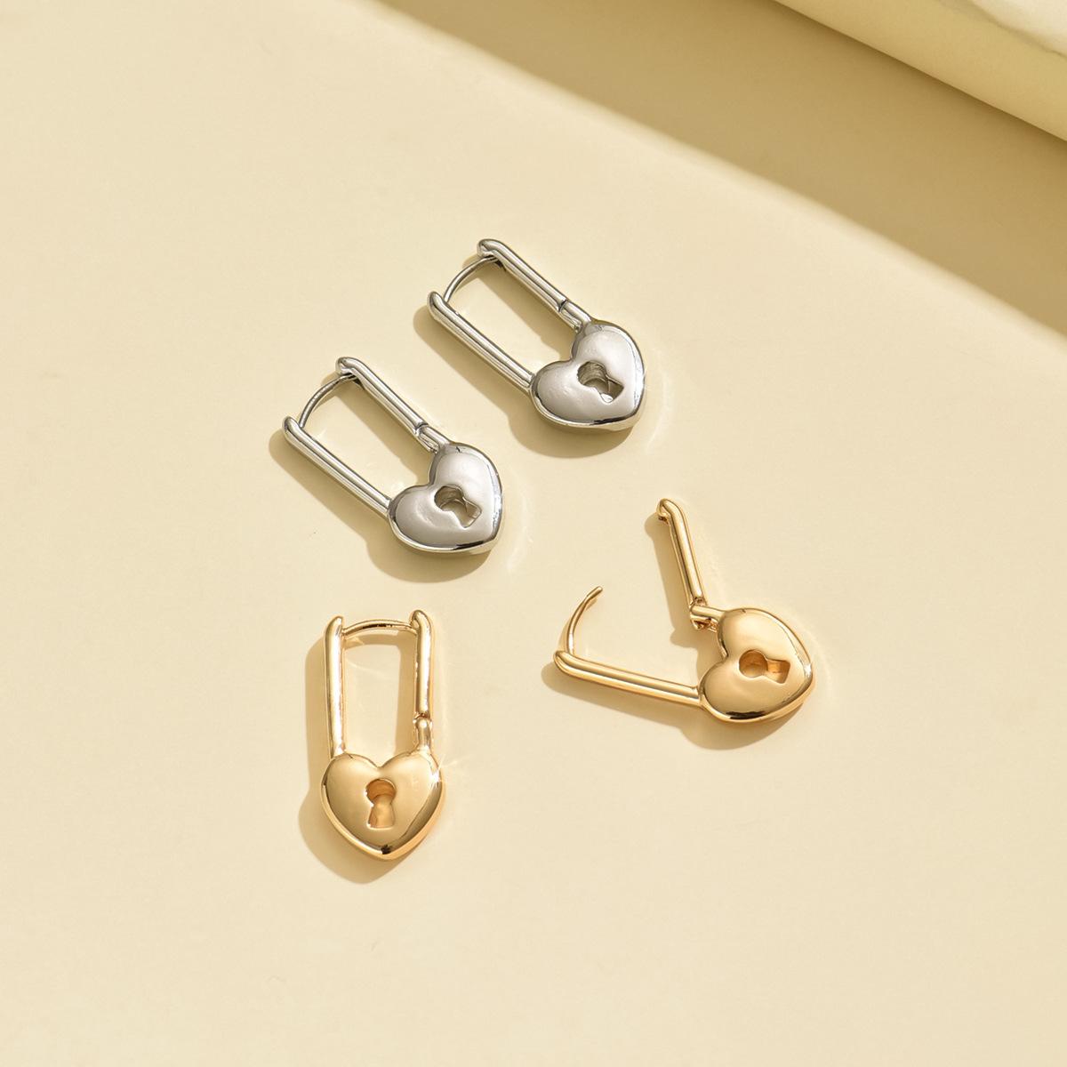 Pendientes con hebilla de oreja con candado pequeño de amor transfronterizo de Europa y Estados Unidos, diseño de nicho femenino de temperamento de moda, candado de amor tridimensional