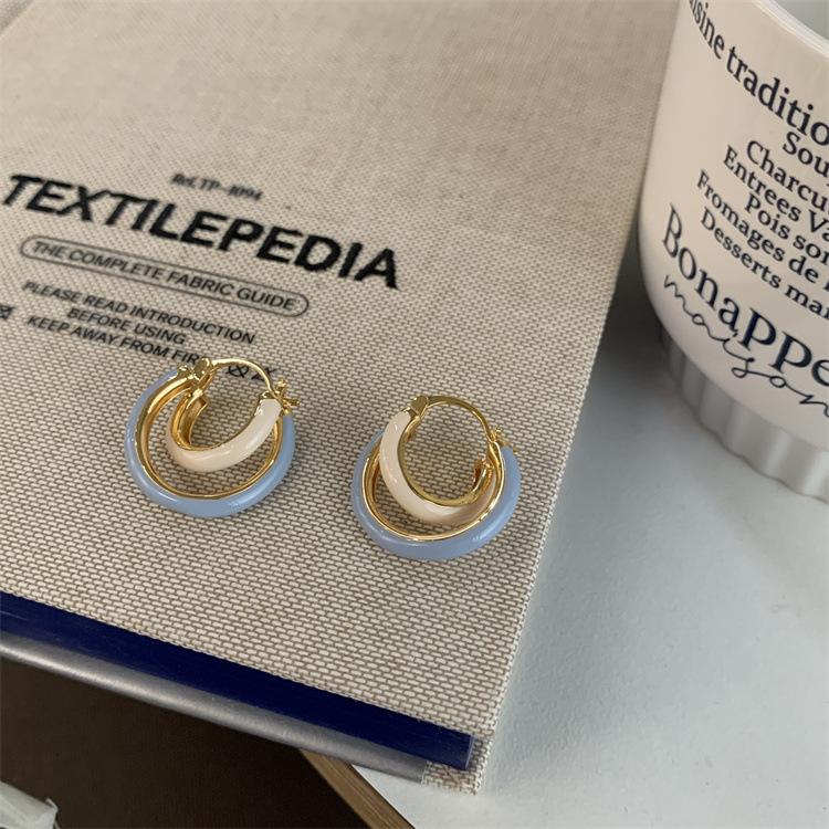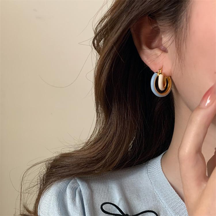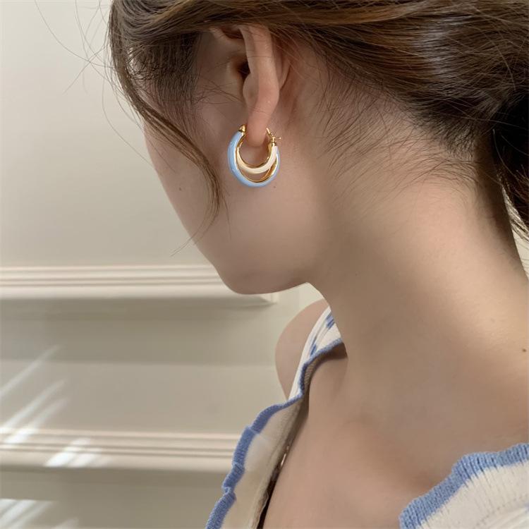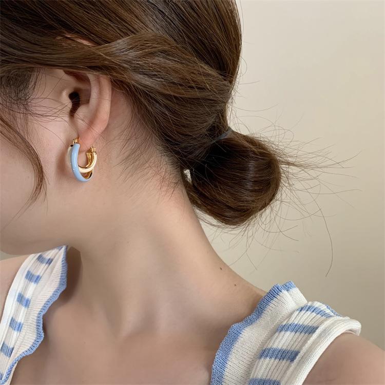 Aretes colgantes vintage de moda de primavera y verano azul agua con aceite goteado 2025 nueva explosión alto sentido arete nicho temperamento aretes