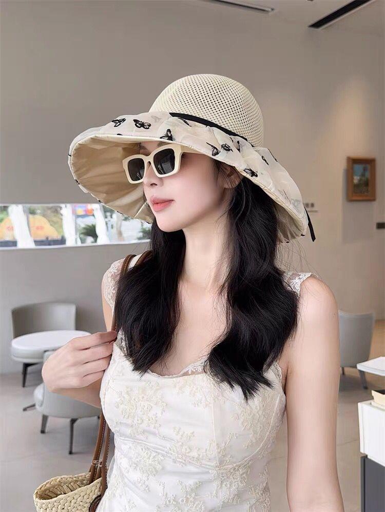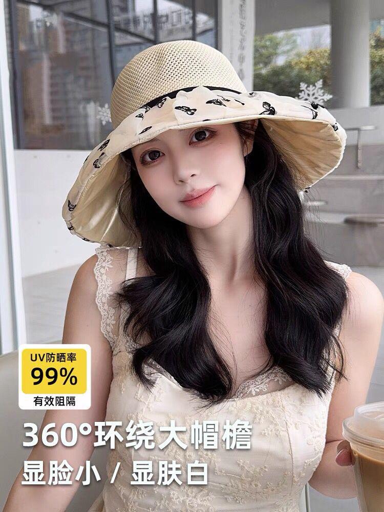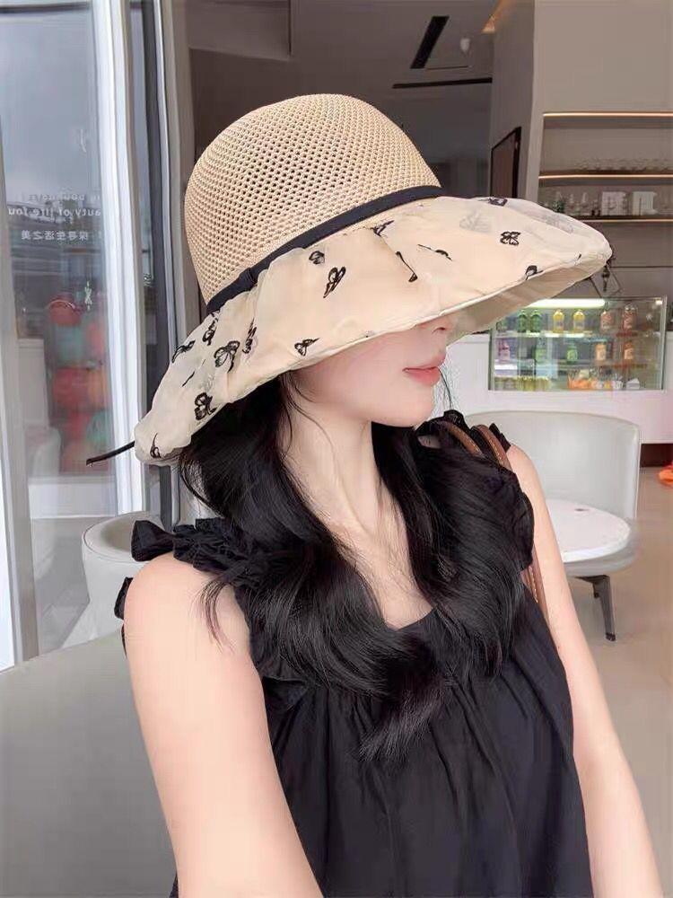 Sombrero de pescador de verano con lazo para mujer estilo coreano combinable de ala ancha sombrero para el sol a prueba de rayos UV sombrero para el sol de goma de color para la playa