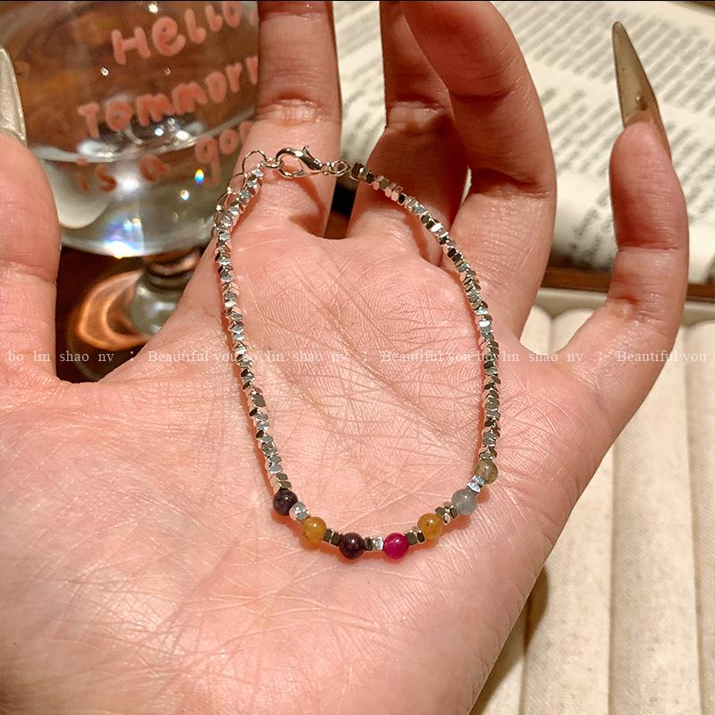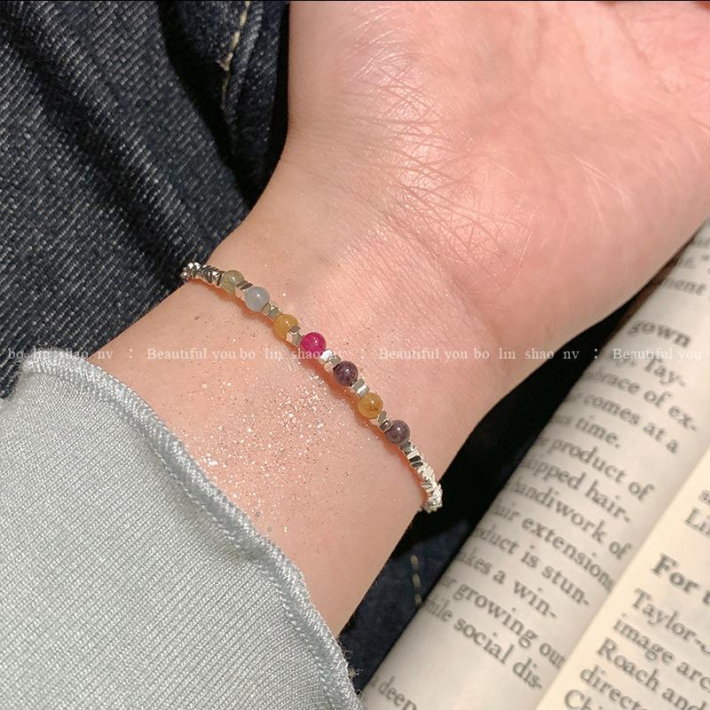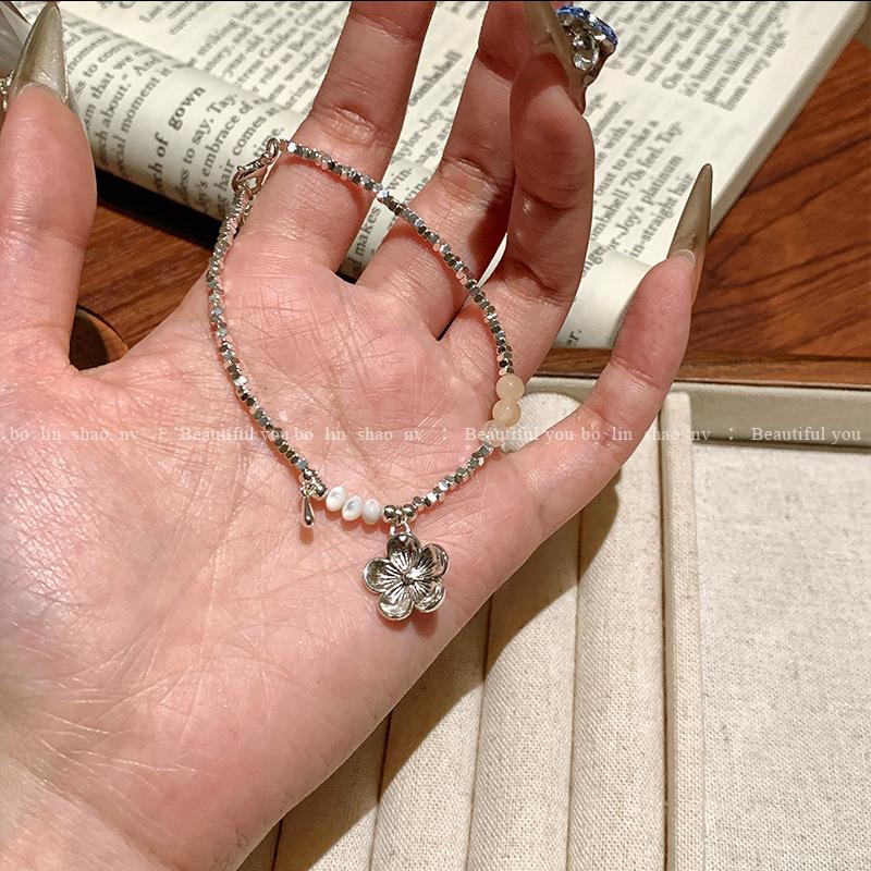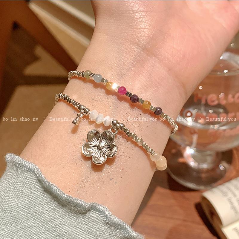 Pulsera Guofeng con turmalina y flor de plata rota para mujer, 2025, lujosa y delicada, de alta gama, para novias.
