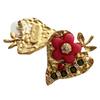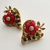 Pendientes grandes con forma de aguja de plata y latón antiguo estilo francés con bola verde y diamantes de imitación y flor roja de fresa dorada de estilo europeo y americano.
