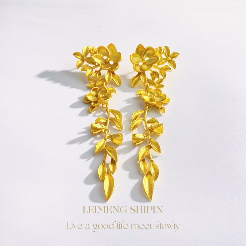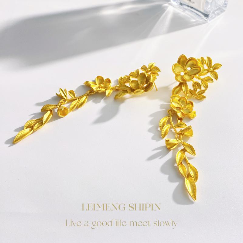 Aretes de borla de hojas de flores doradas Europa y Estados Unidos exagerados aretes de viento heavy metal moda aretes de alta gama al por mayor mujeres