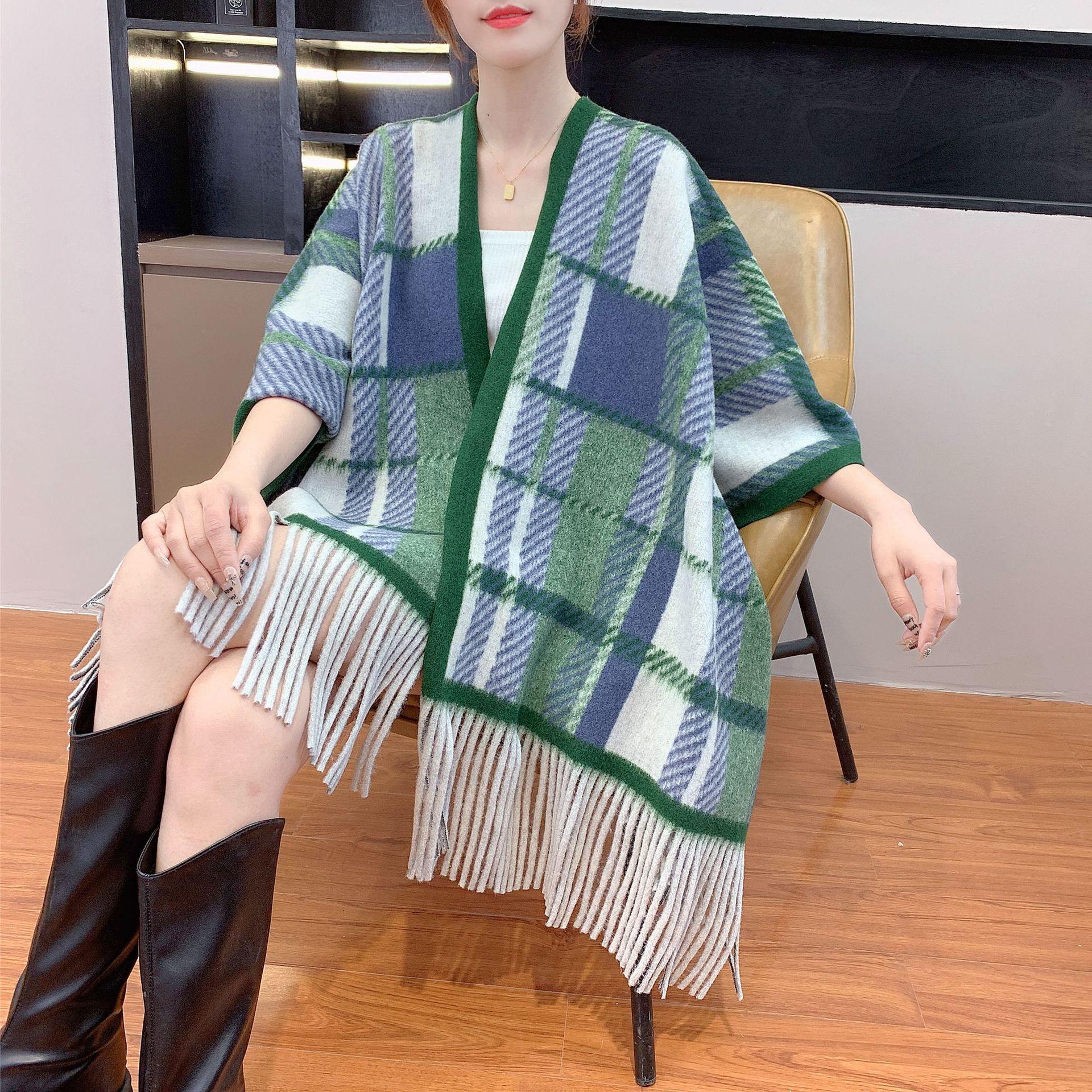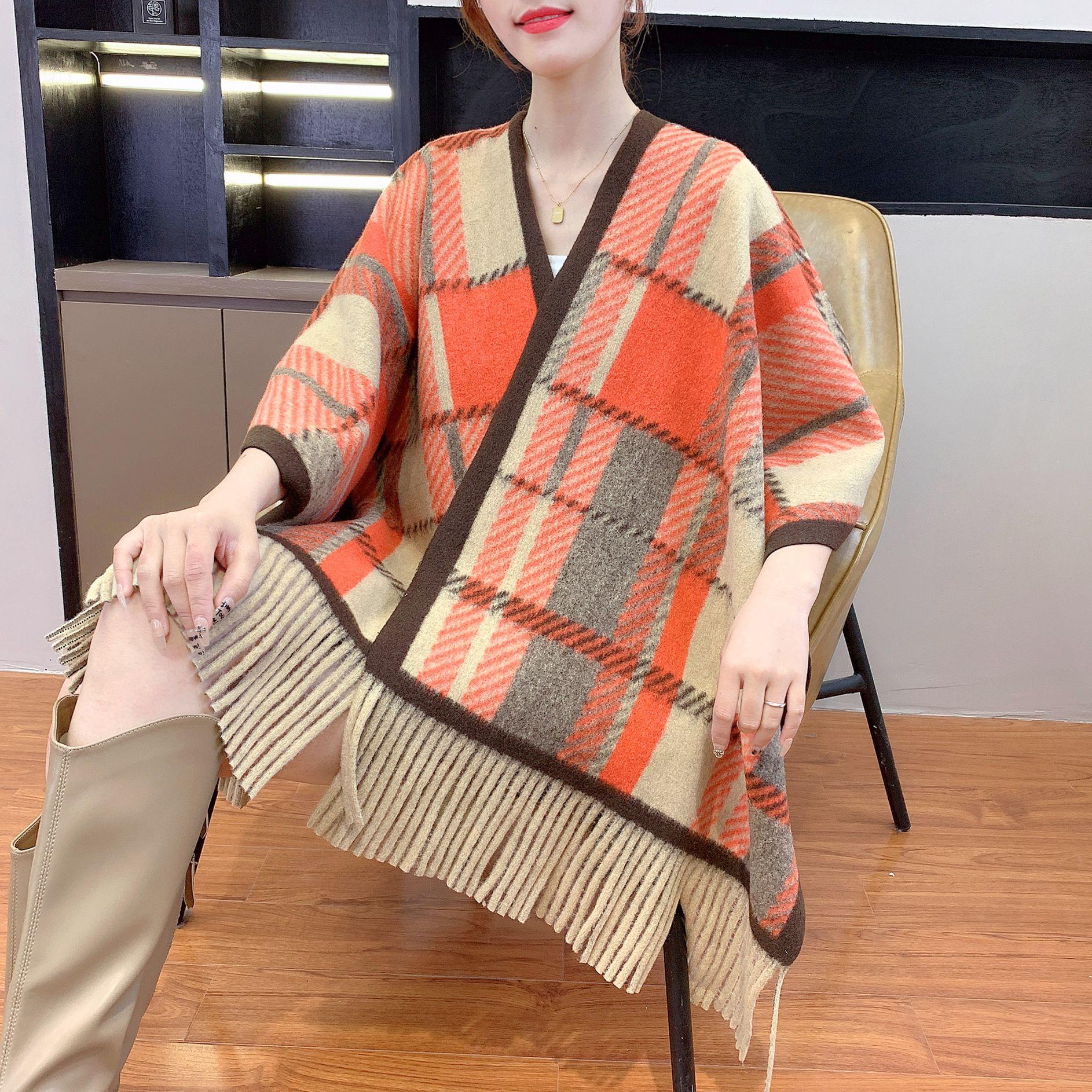 Chal de Cachemira Imitación Coreana Estampado para Ropa Exterior, Elegante Decoración de Capa, Bufanda Cálida Nueva a Cuadros Retro