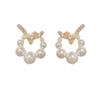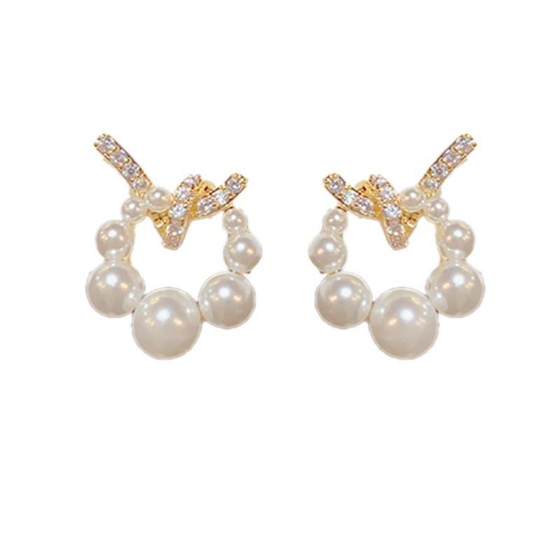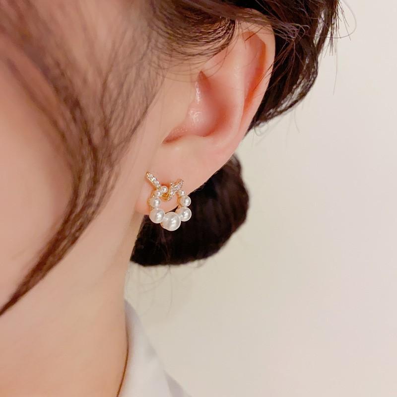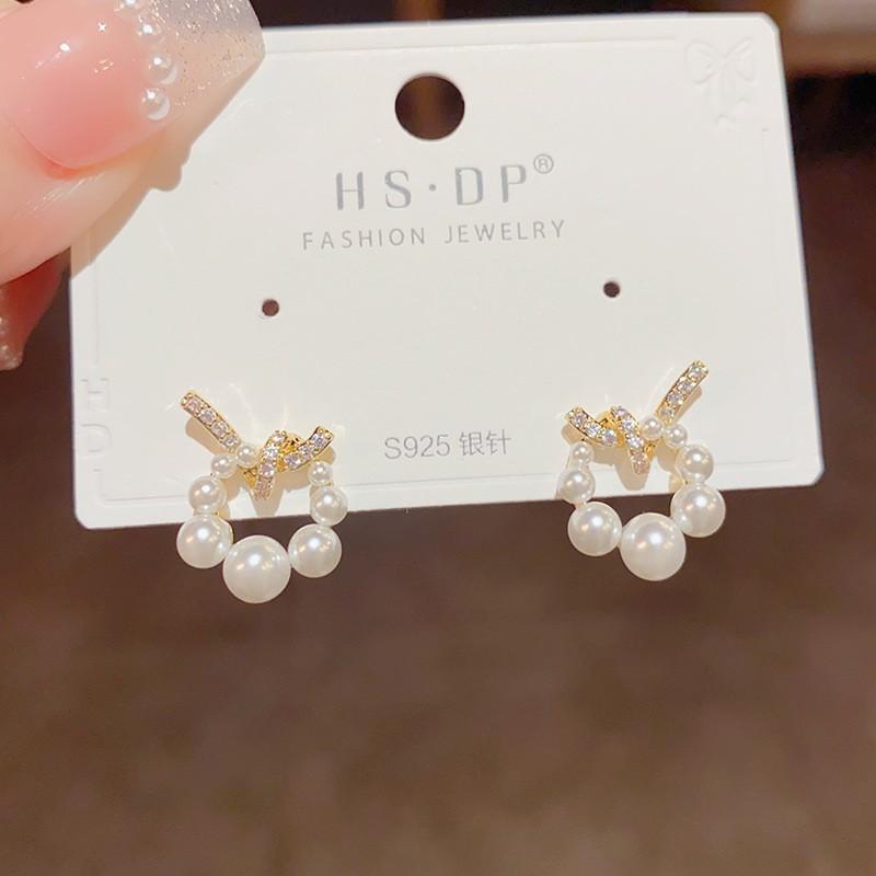 Aretes de Nudo de Perlas de Lujo Ligero de Alta Gama Estilo Japonés y Coreano para Mujer Aretes Dulces Elegantes Simples Micro-incrustados Zirconio Aguja de Plata