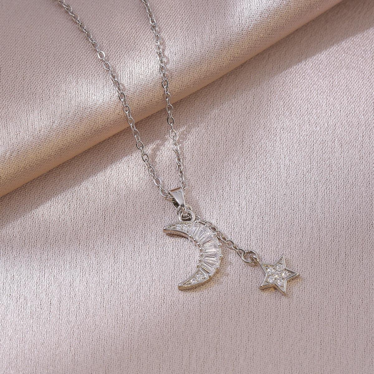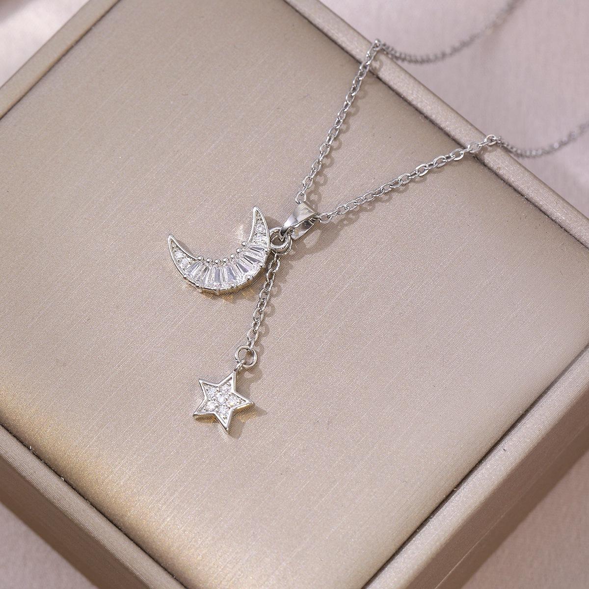 Collar para Mujer Moda Transfronteriza Media Luna Pequeño Fresco Acero Titanio Collar Diseño Nicho Colgante Cadena Clavícula Joyería Temperamento