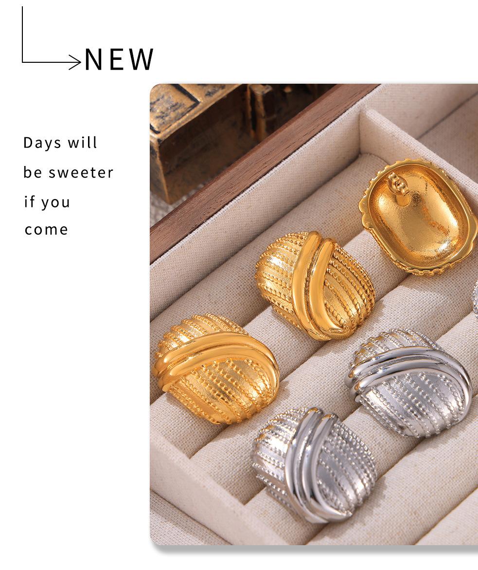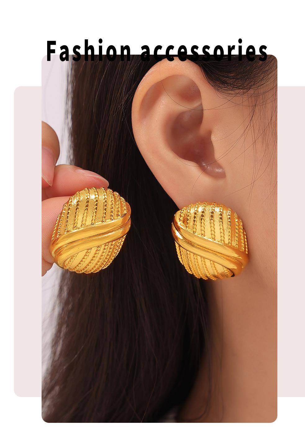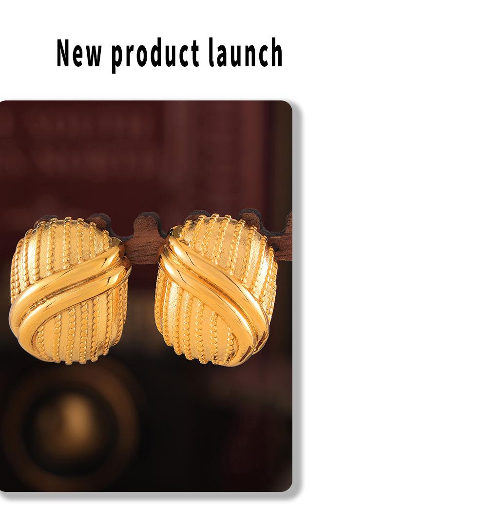 Aretes geométricos de textura de estilo europeo y americano de venta caliente, nicho simple versátil diseño de moda, acero de titanio chapado en oro de 18 quilates