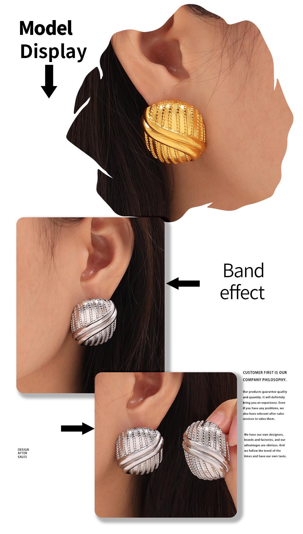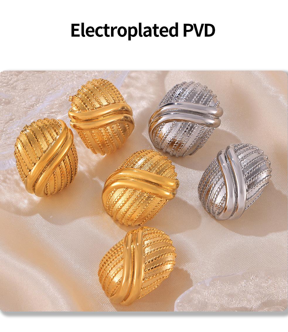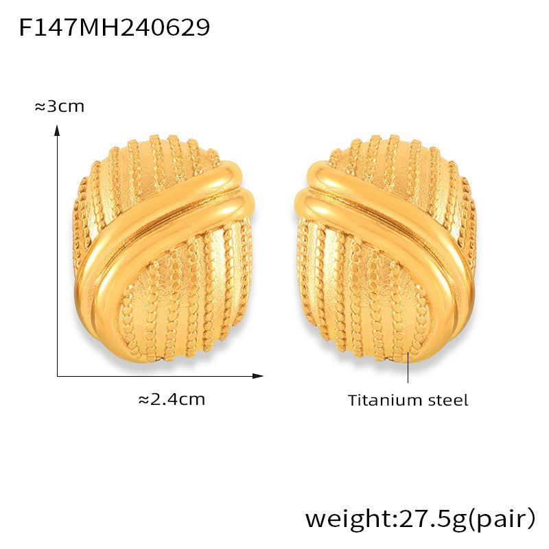 Aretes geométricos de textura de estilo europeo y americano de venta caliente, nicho simple versátil diseño de moda, acero de titanio chapado en oro de 18 quilates