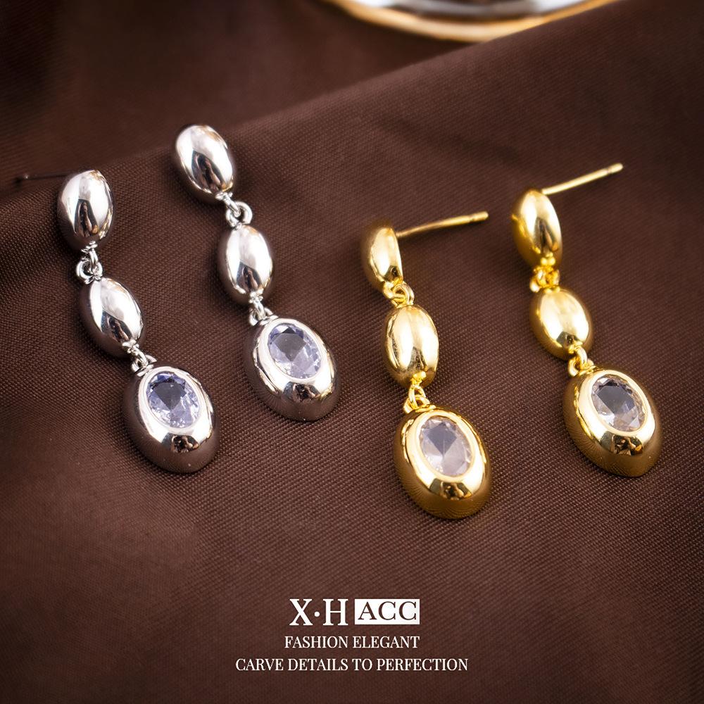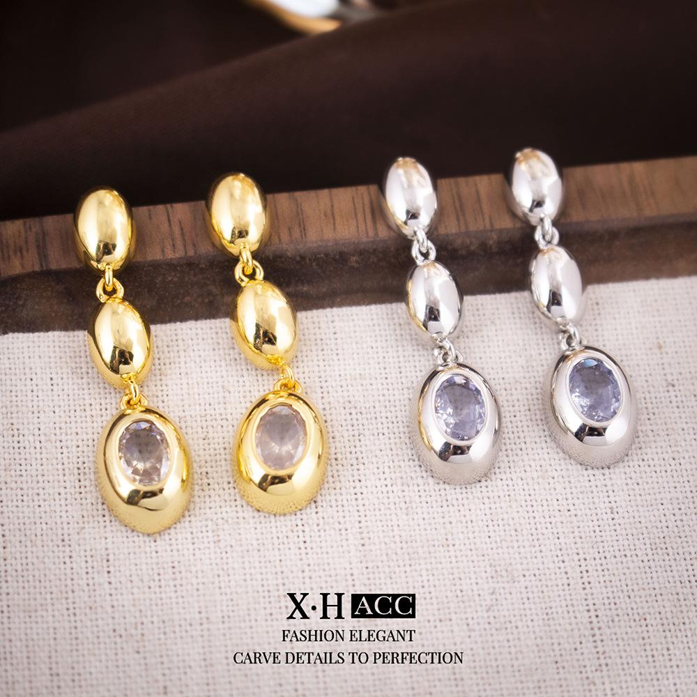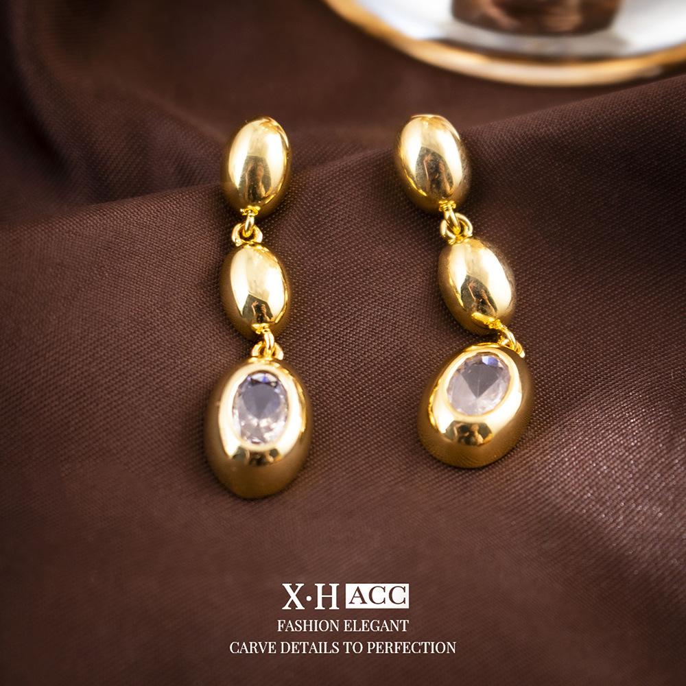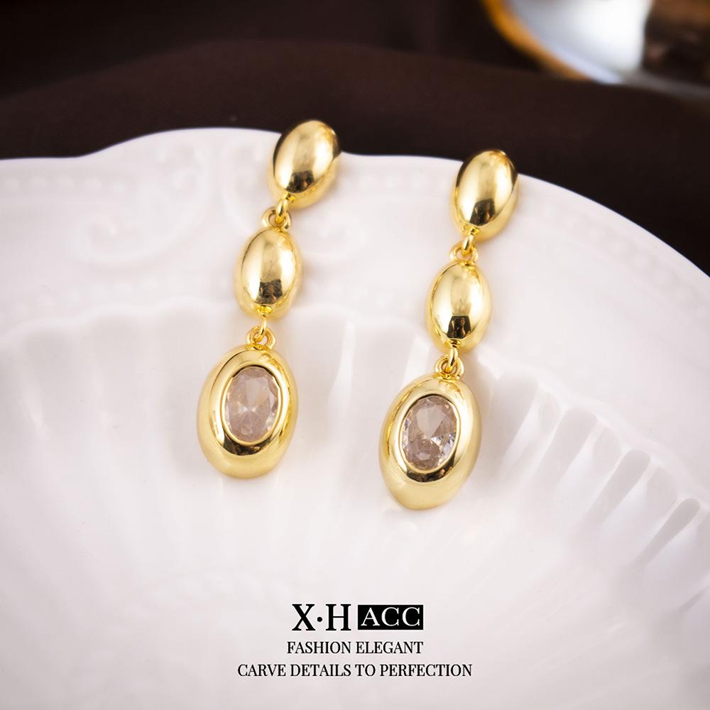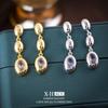 Aretes de Borla de Gota de Agua de Zirconia Galvanizados en Oro Real Aretes Geométricos Simples de Lujo Accesible Europeos y Americanos Aretes Versátiles de Alta Gama para Mujer