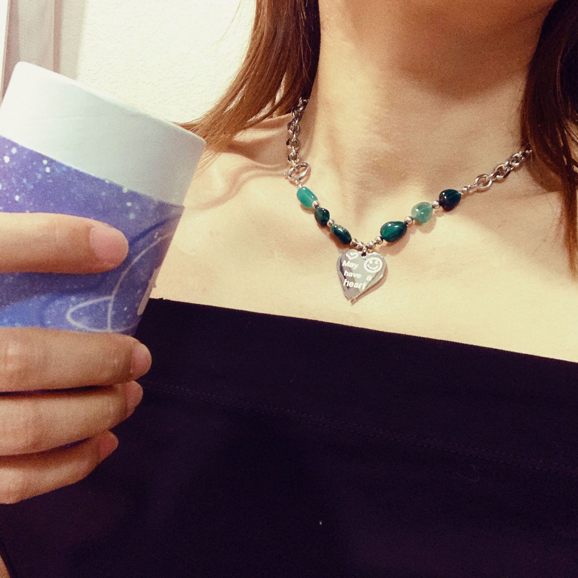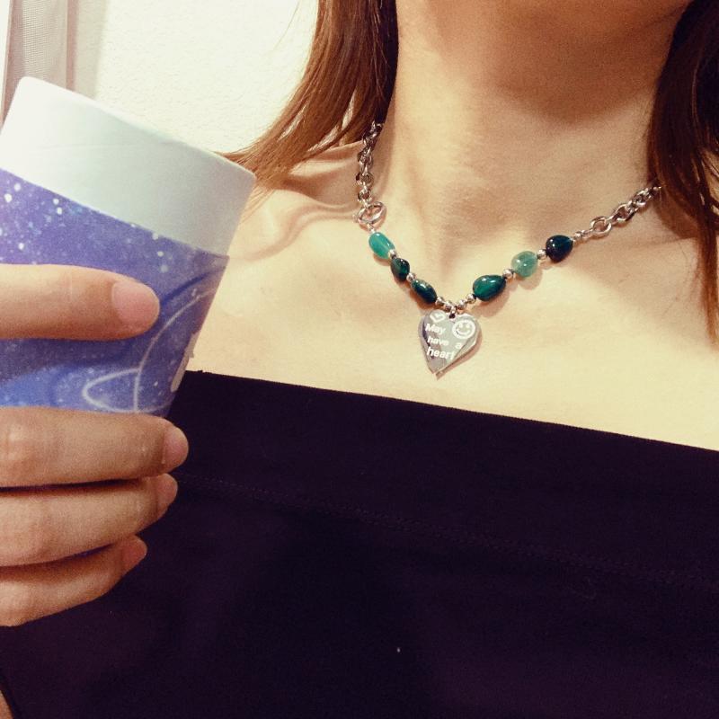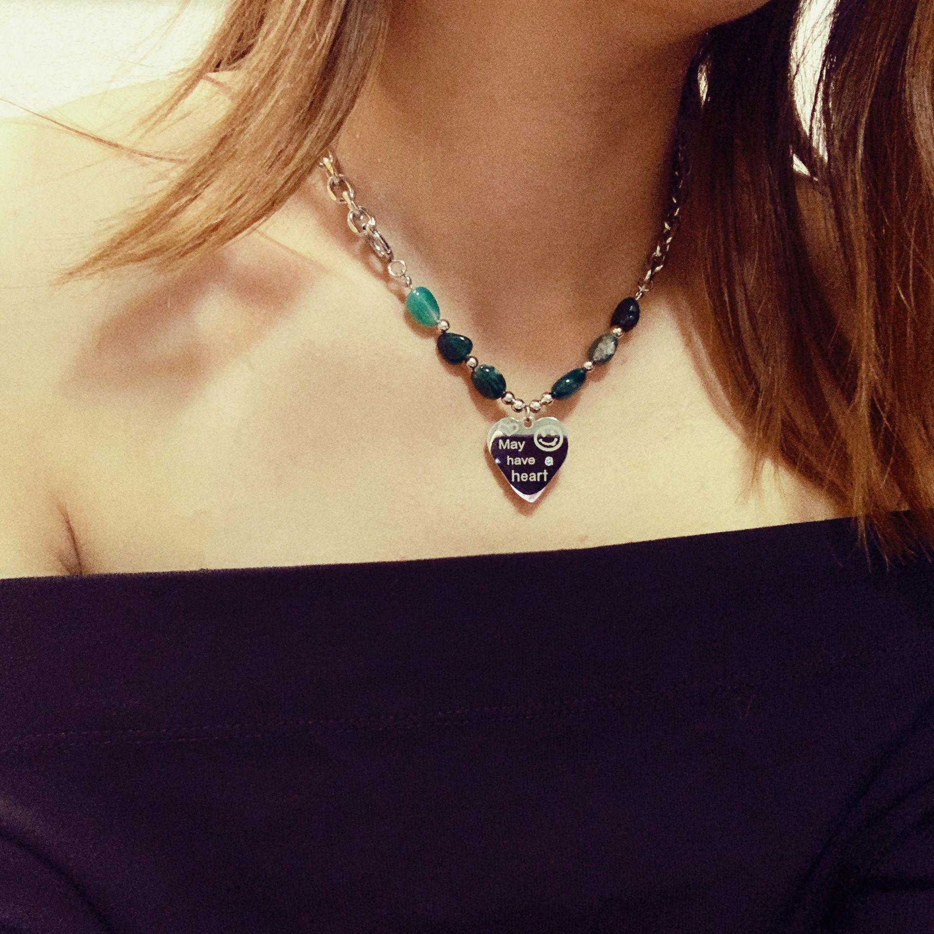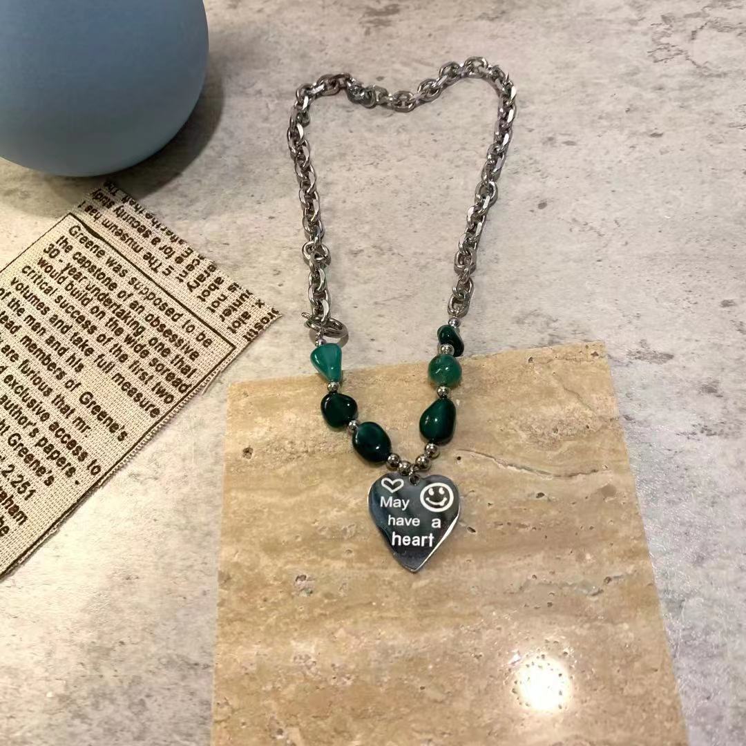Collar de acero de titanio estilo retro frío europeo y americano con personalidad para mujer, cadena de clavícula de acero inoxidable con amor, joyería sencilla para celebridades de Internet.