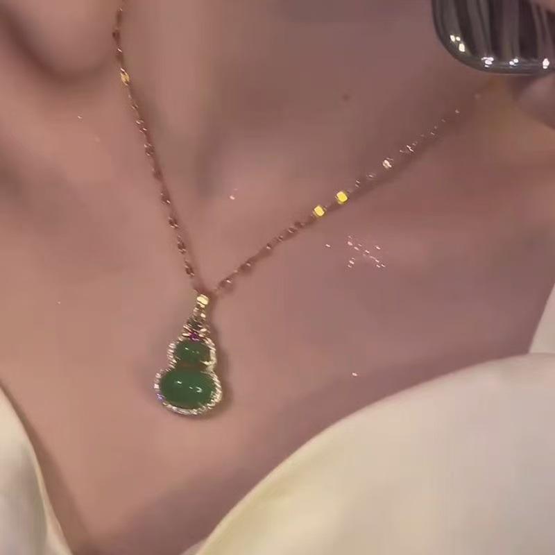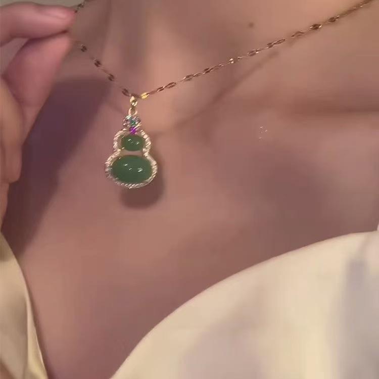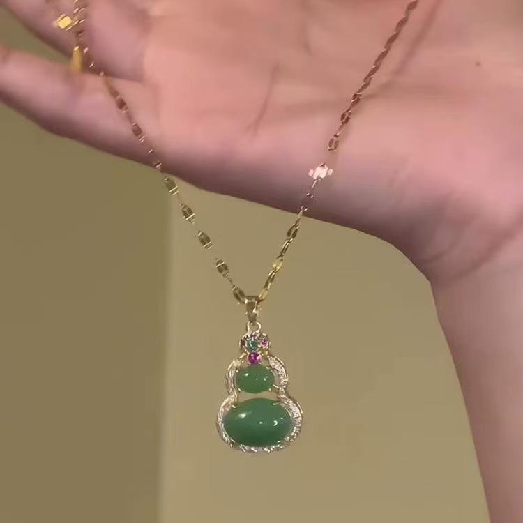 Nuevo Collar con Colgante de Calabaza Verde de Estilo para Mujer Diseño Nicho de Lujo Ligero Cadena Clavícula de Alta Calidad 2025 Cadena de Collar de Estilo Étnico
