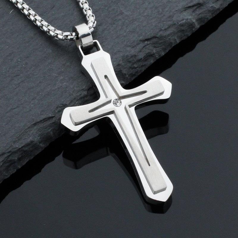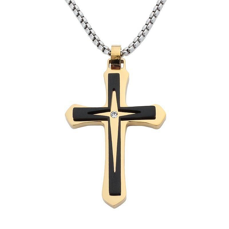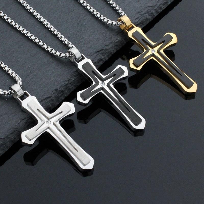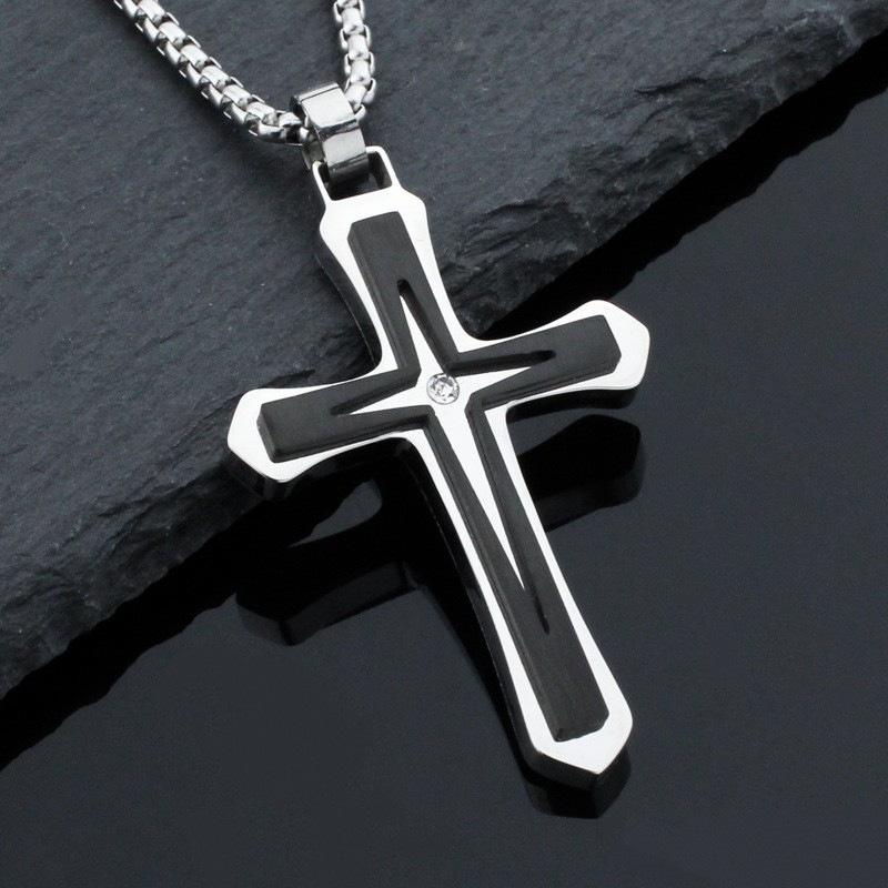 Diamond cross steel necklace, Diamond cross black necklace, Diamond cross gold necklace