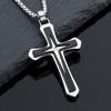 Collar de Acero de Titanio para Hombre y Mujer con Colgante de Cruz de Diamantes de Doble Capa Europeo y Americano Transfronterizo Punk Hip-hop Simple Combinable Largo