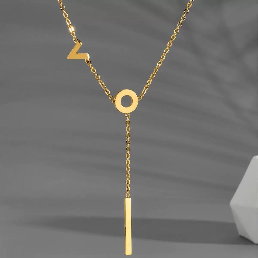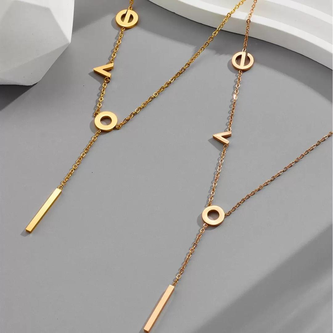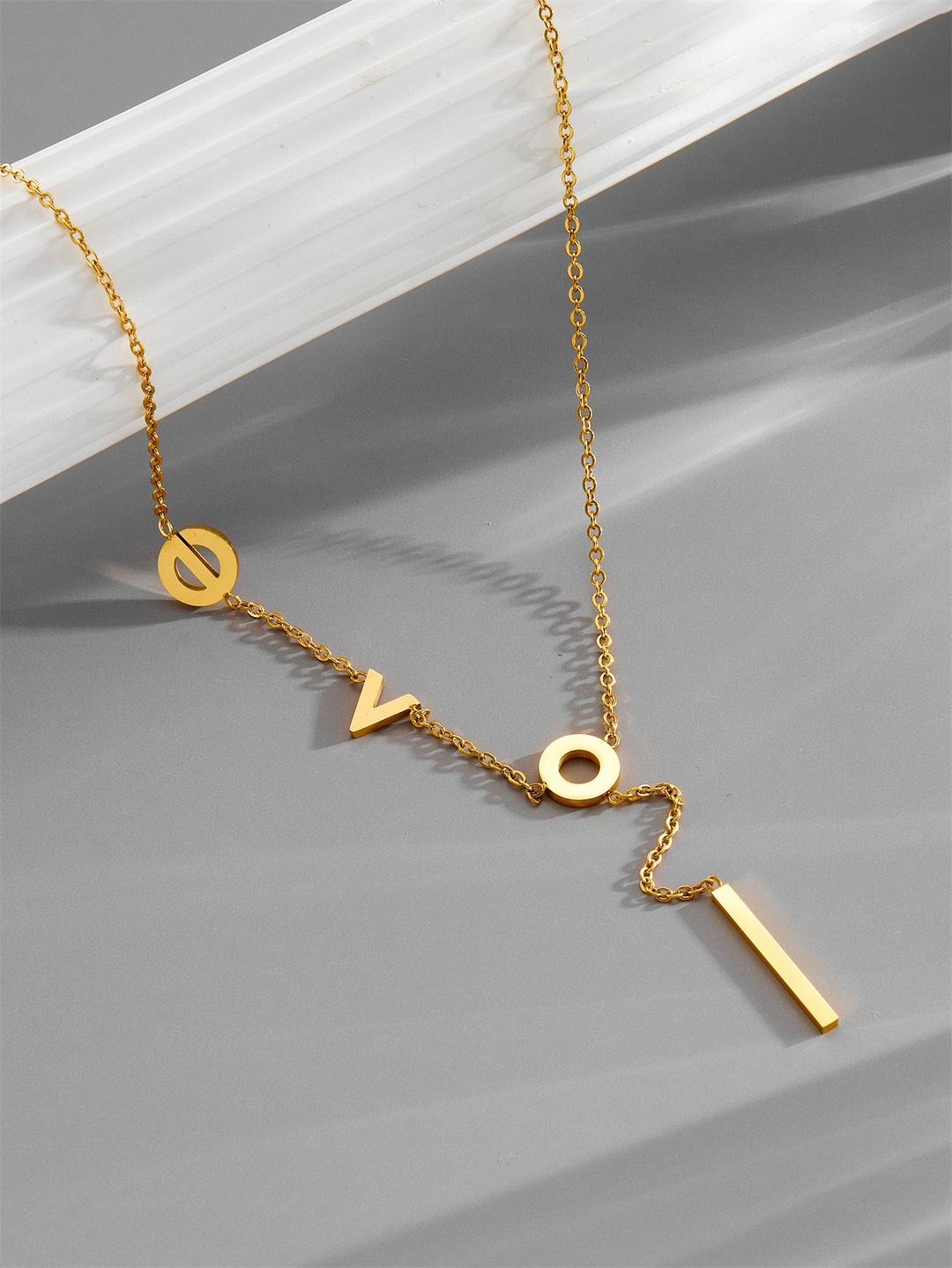 Collar de Amor de Acero de Titanio para Mujer, Cadena para Clavícula con Diseño Único, Colgante de Letra, Estilo Minimalista, Chapado en Oro de 18K Oro Rosa