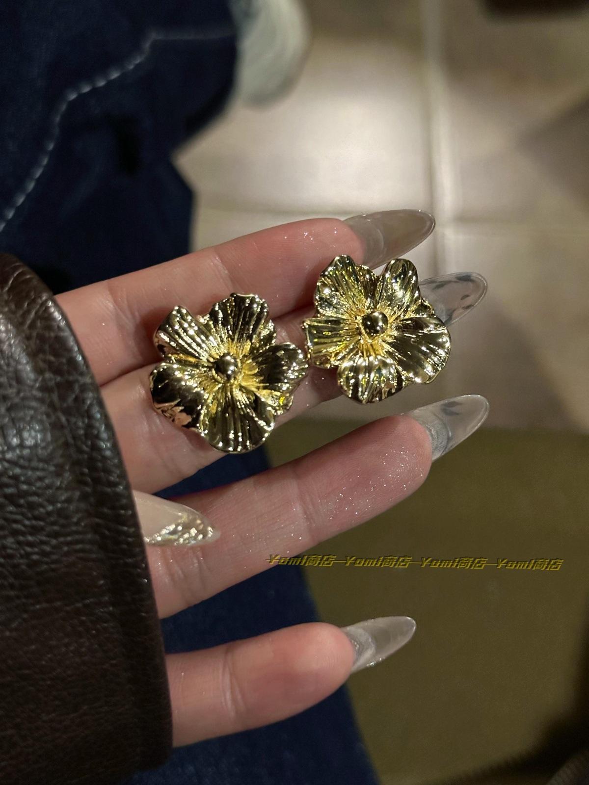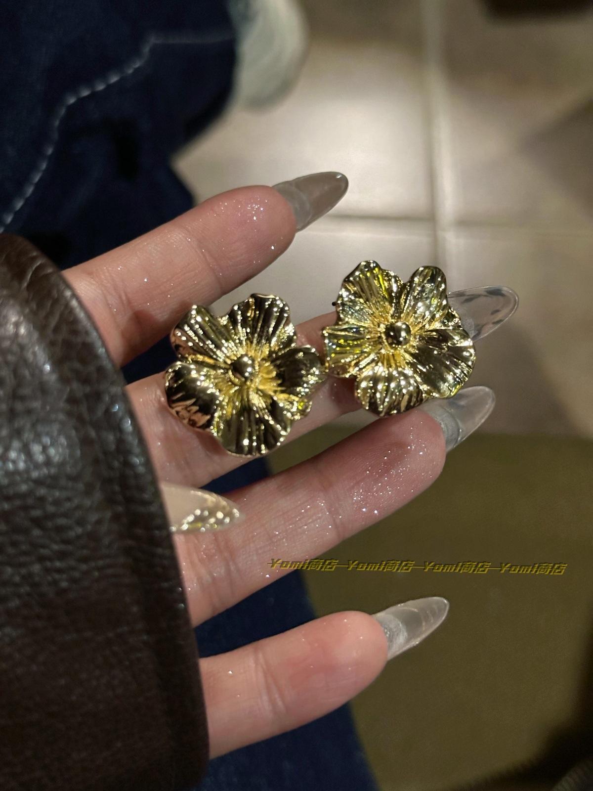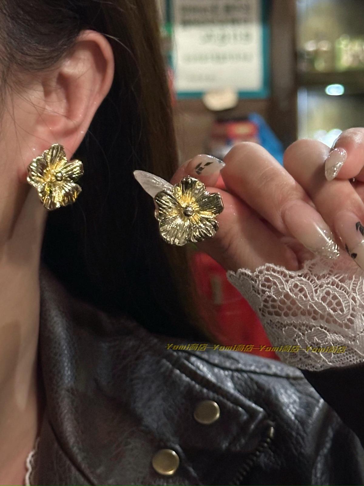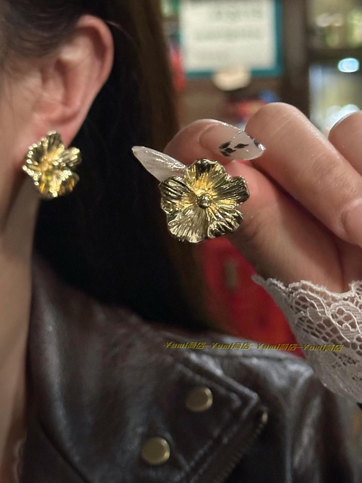 Pendientes de metal retro con temperamento francés y flores, con un toque de viento frío y dulce, nuevos pendientes 2025 al por mayor