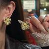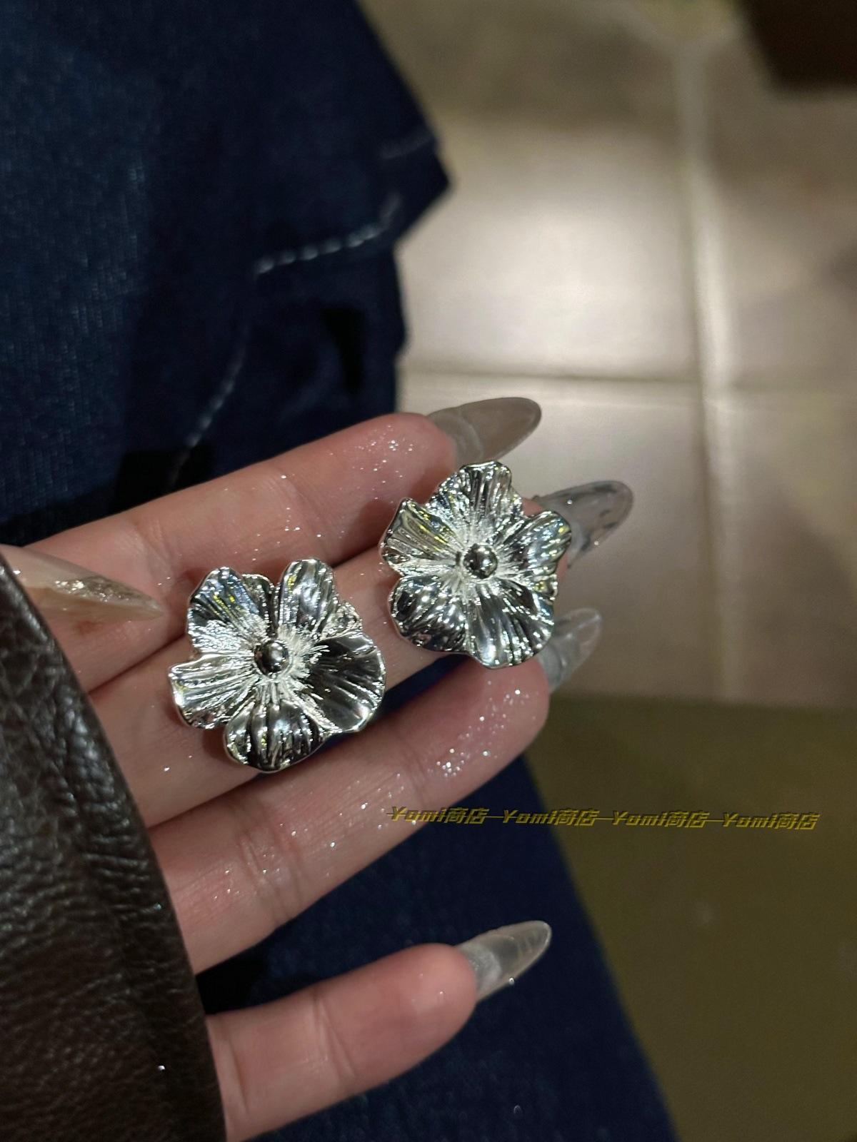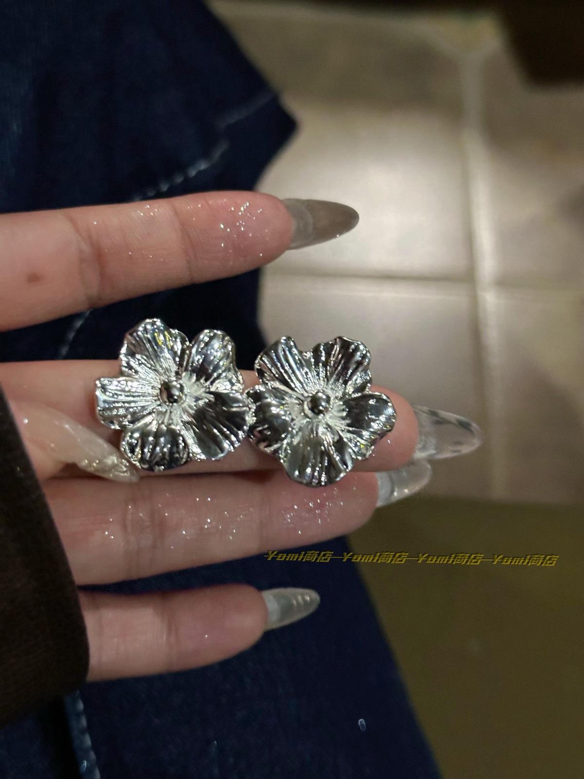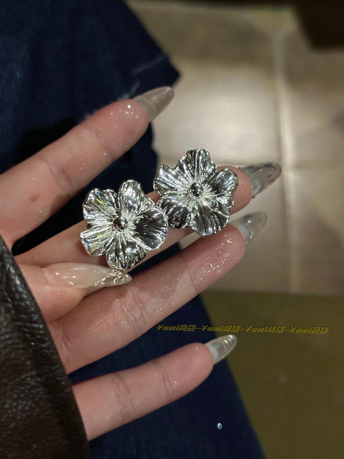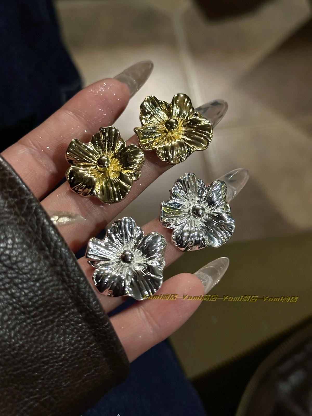 Pendientes de metal retro con temperamento francés y flores, con un toque de viento frío y dulce, nuevos pendientes 2025 al por mayor