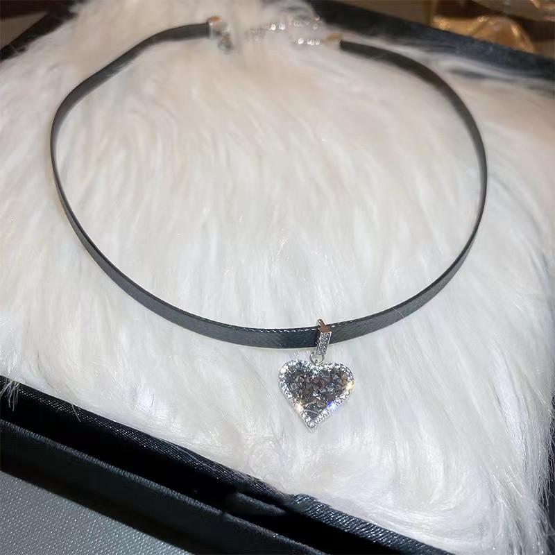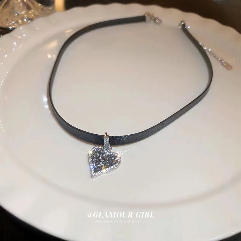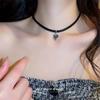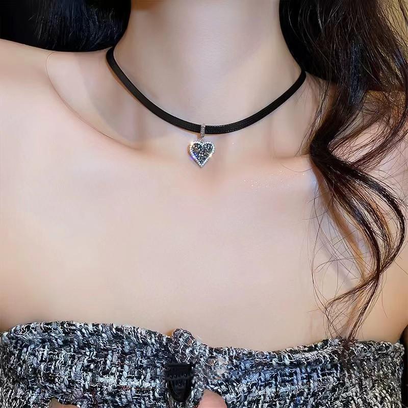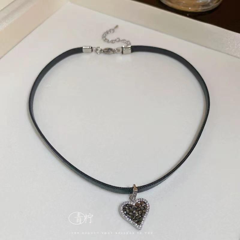 Retro Negro Corazón de Durazno Cuero Estilo Punk Cadena Clavícula Collar Accesorios Simples para Mujer Estilo Corto Frío Chica Dulce y Cool
