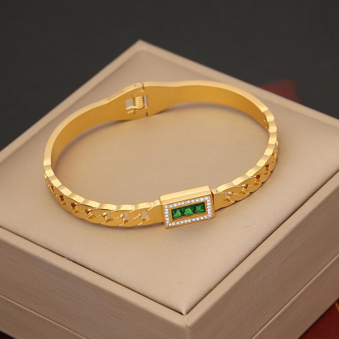 Pulsera europea y americana nueva joyería vintage esmeralda acero inoxidable pulsera lujo ligero circón pulsera pulsera nicho B456