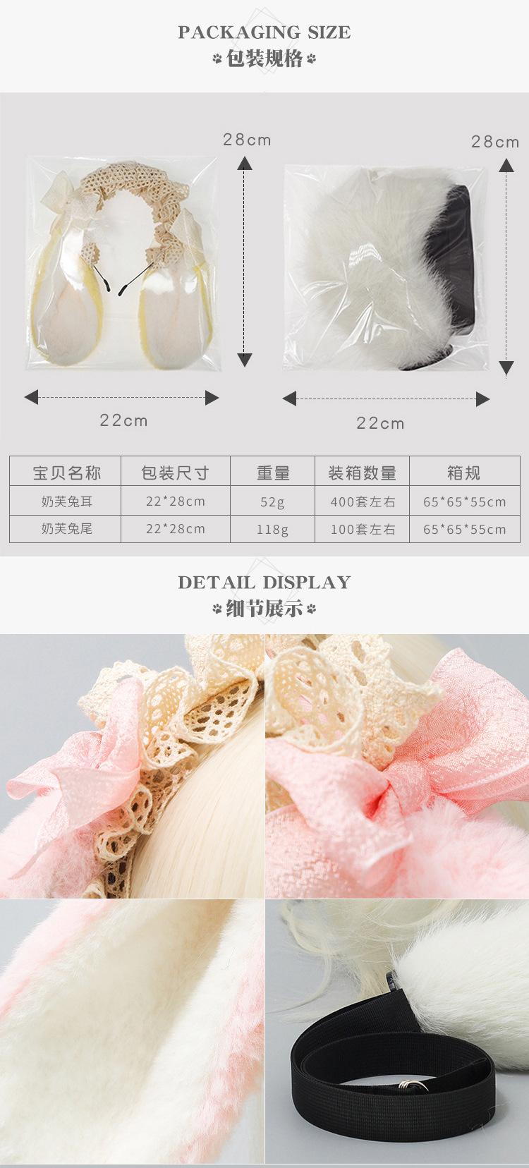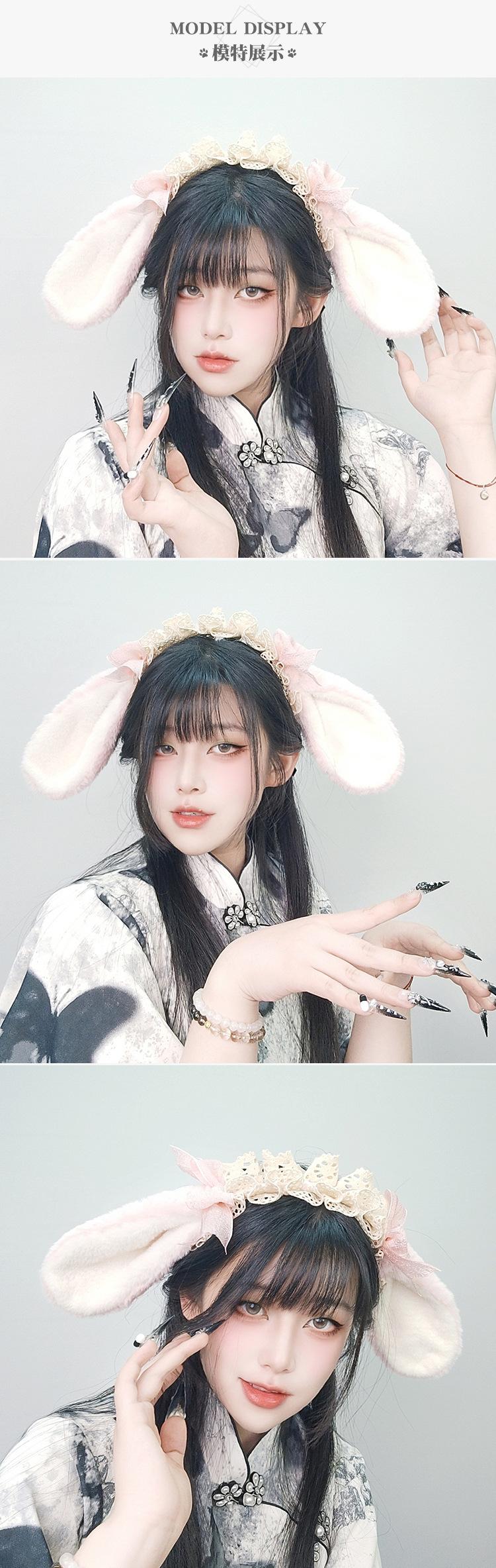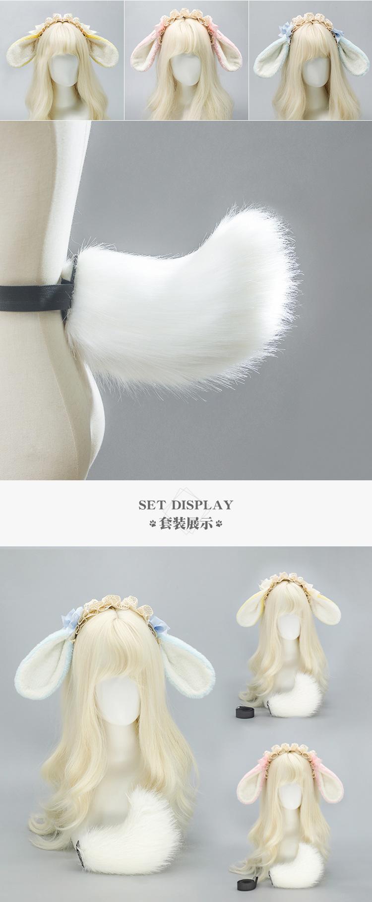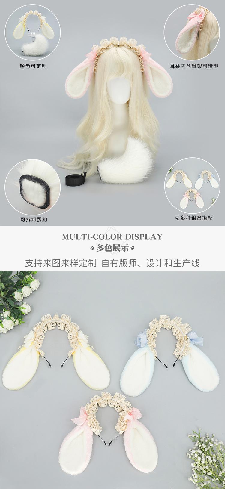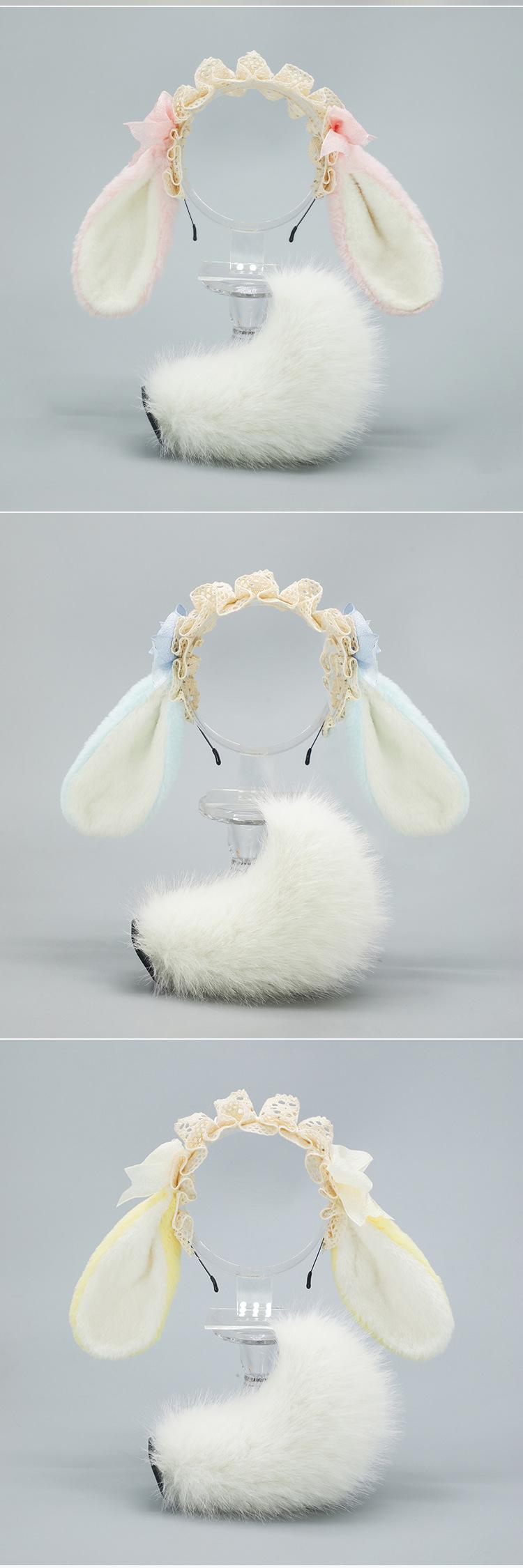 Lolita Alice Orejas de conejo KC Orejas de conejo Traje de cola de conejo cos Diadema de felpa con orejas de conejo y lazo