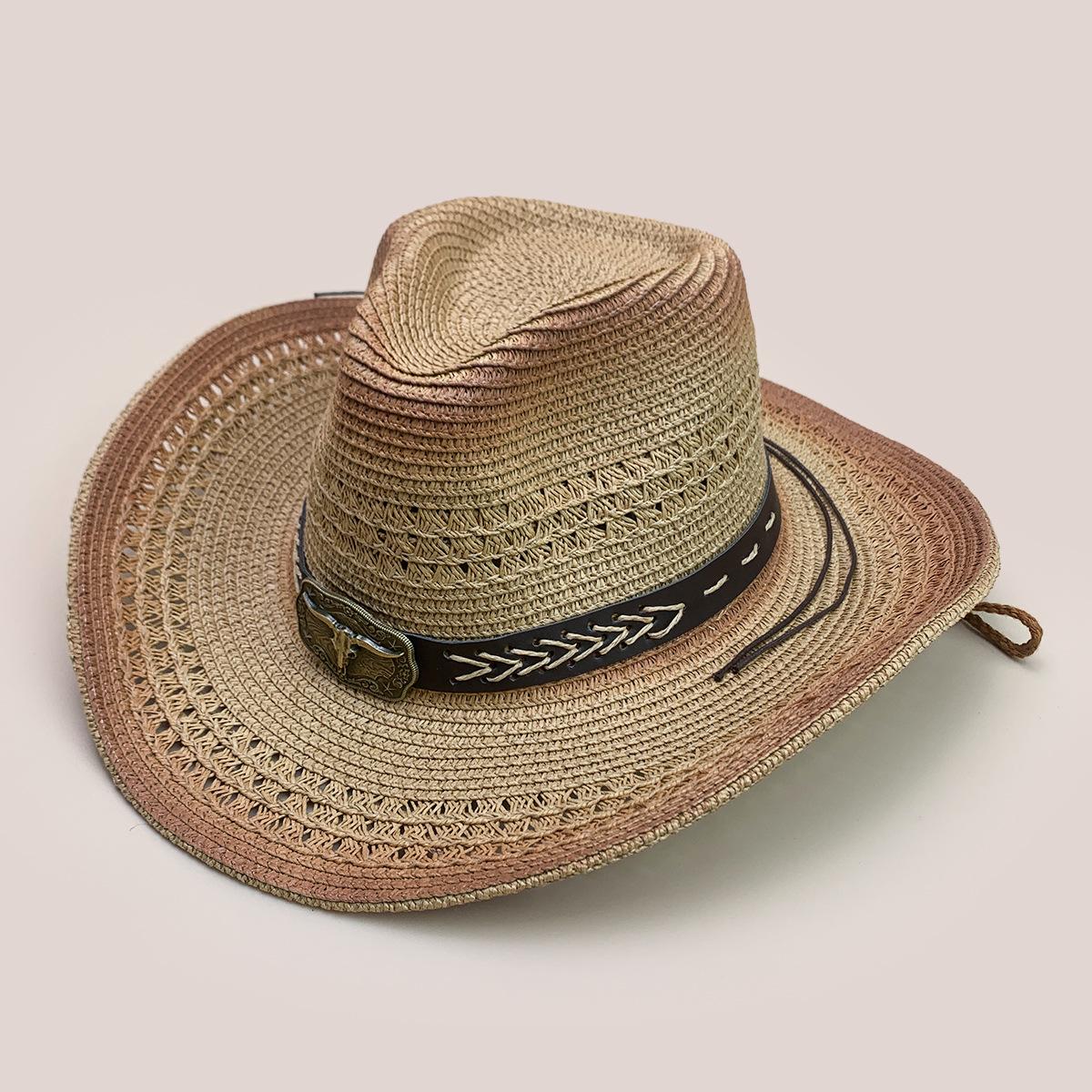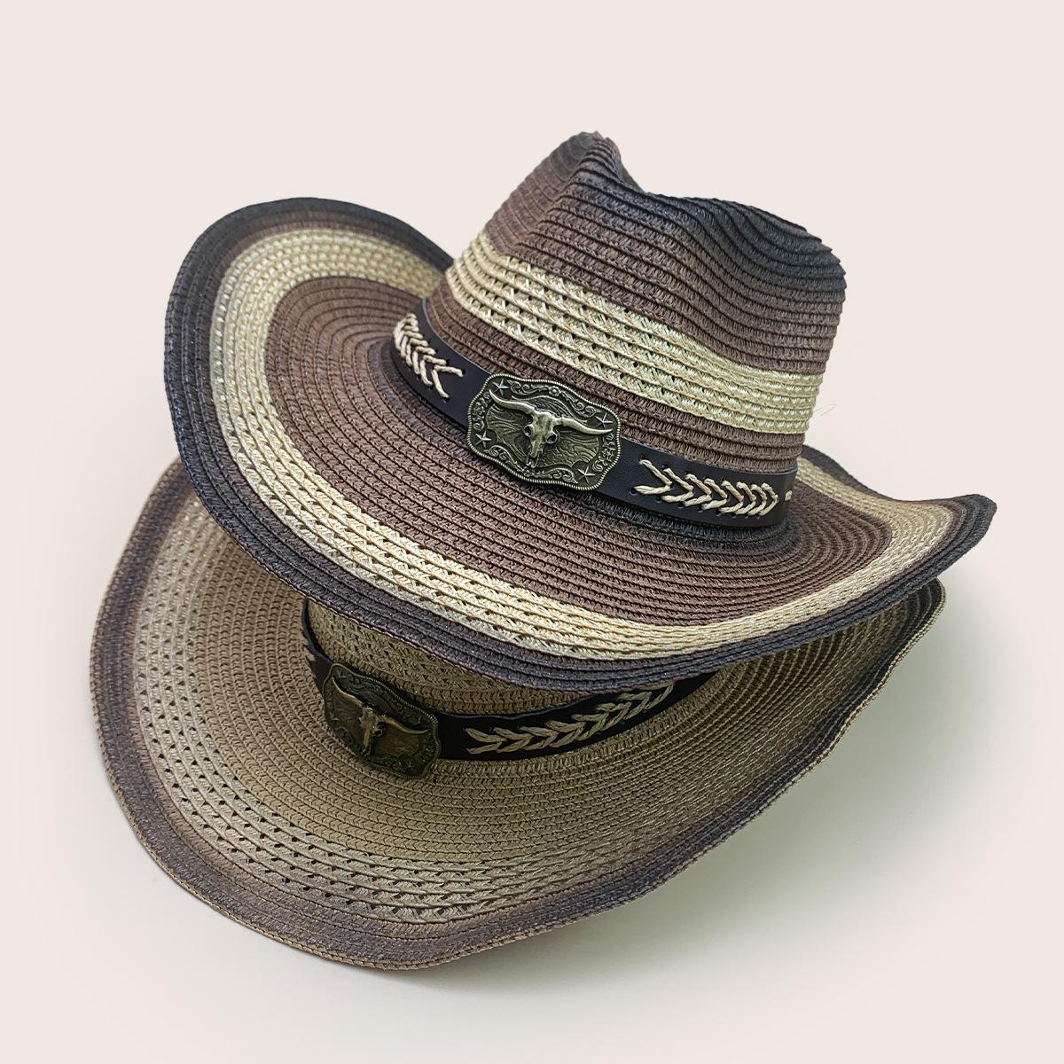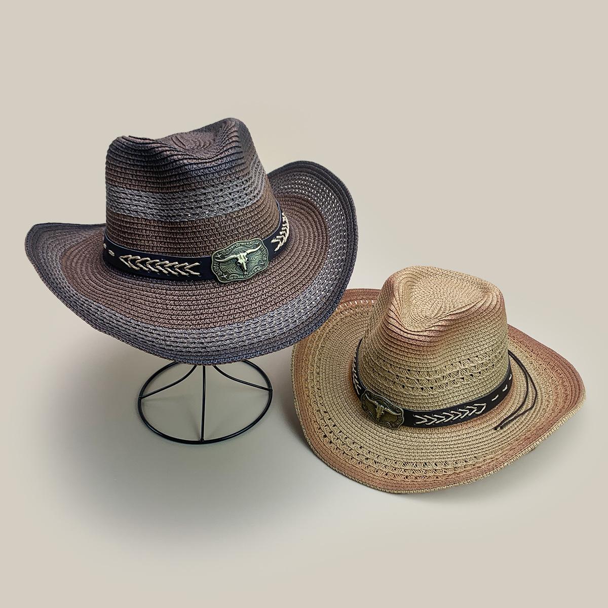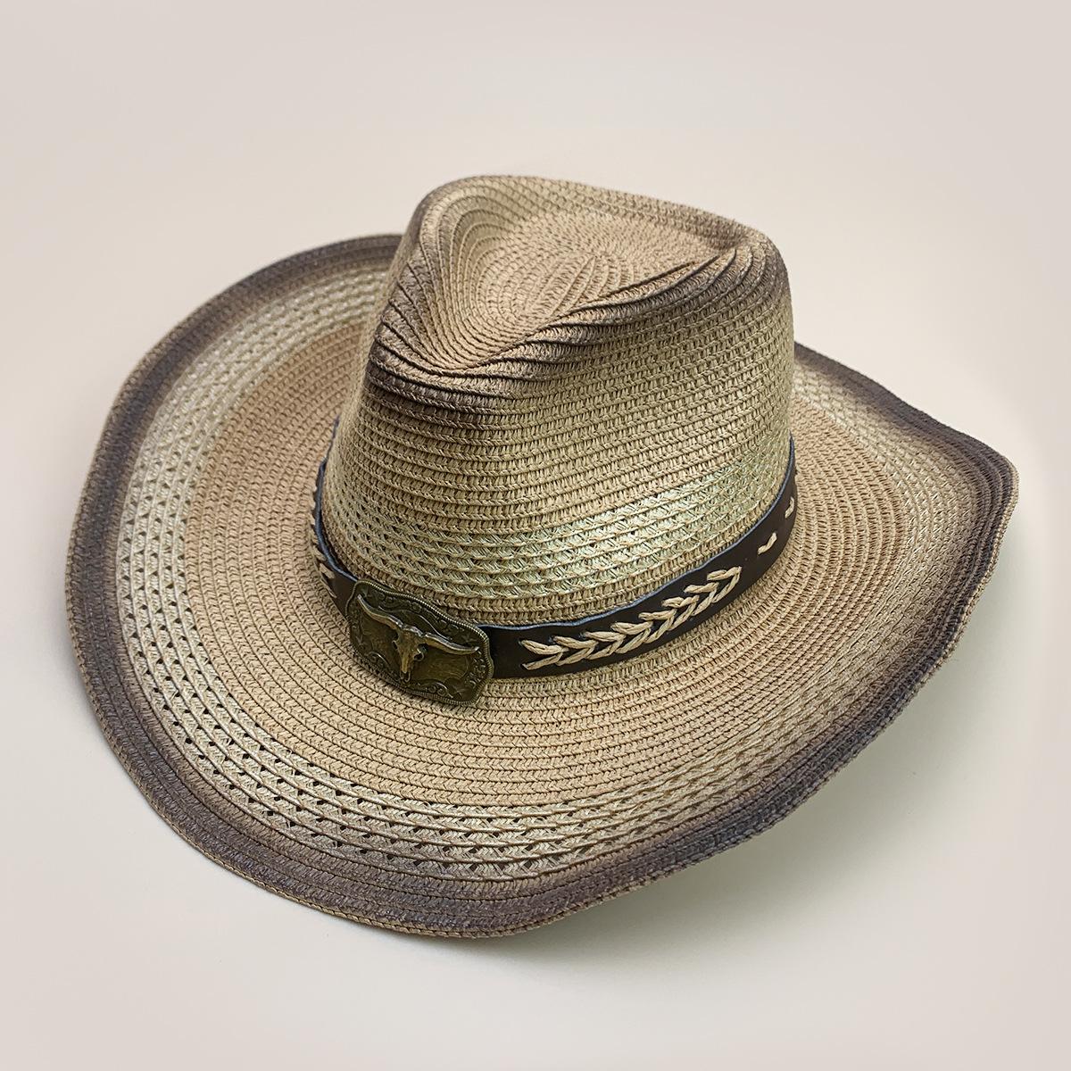 Nuevo cinturón de accesorios de cabeza de vaca a juego de colores sombrero vaquero occidental sombrero de mezclilla hombres y mujeres retro parasol sombrero de paja para exteriores al por mayor