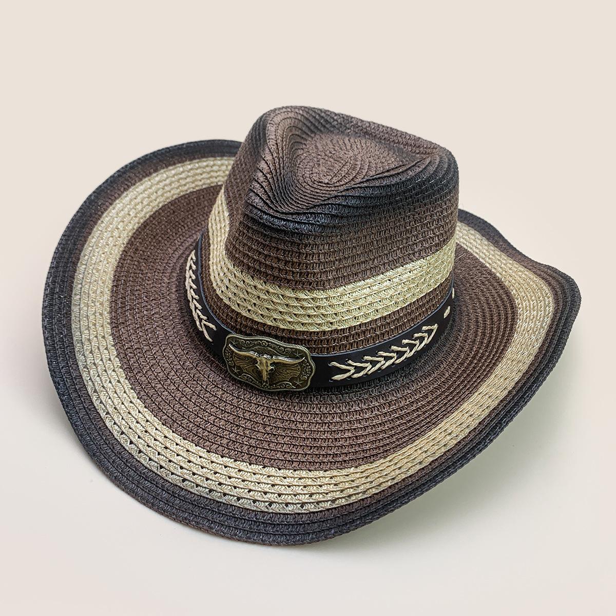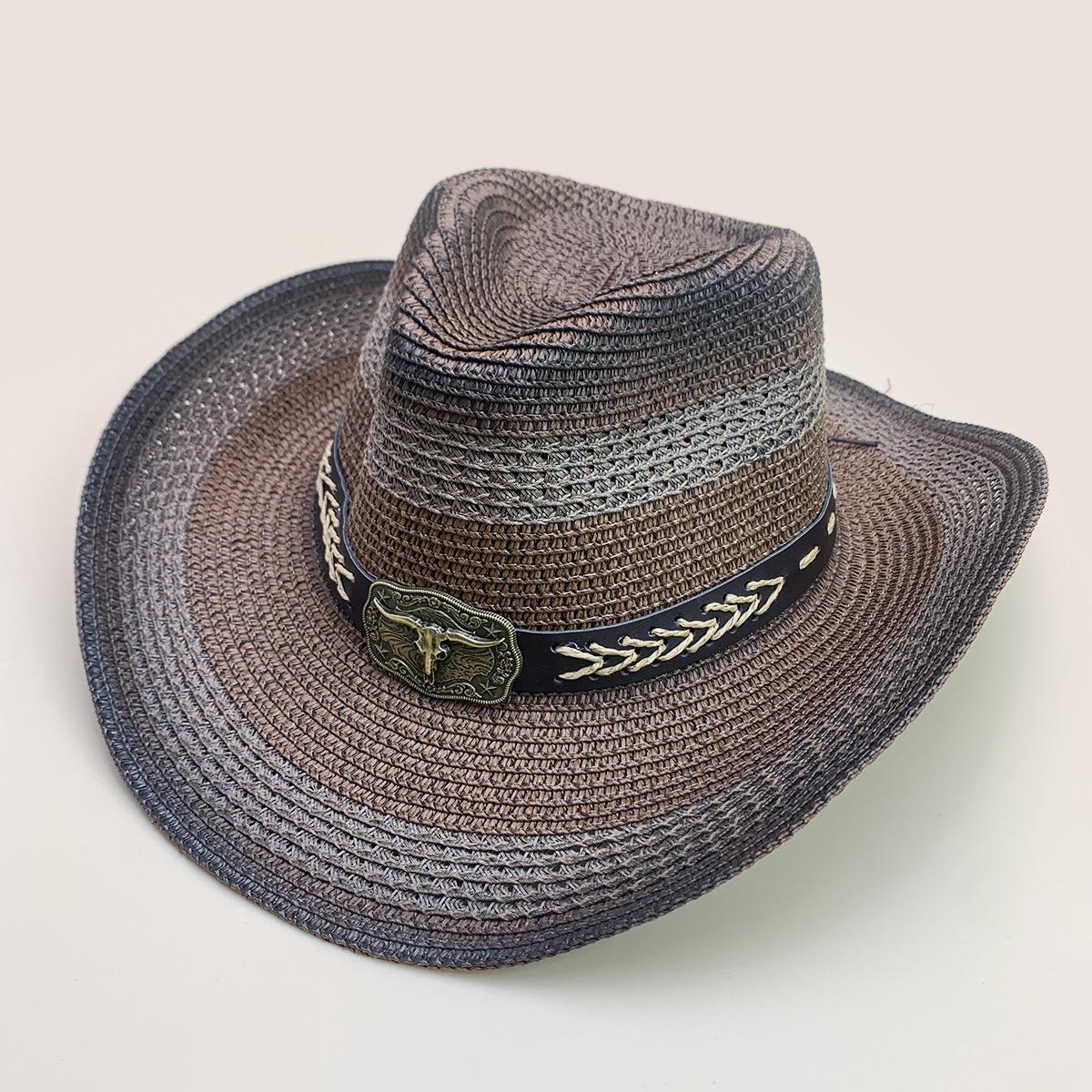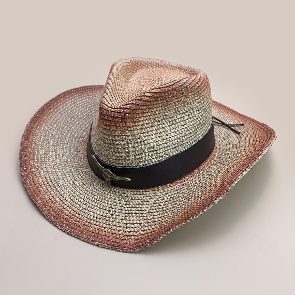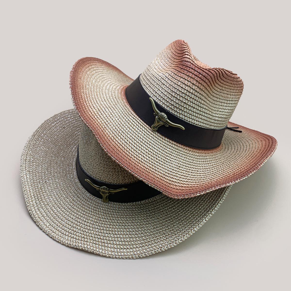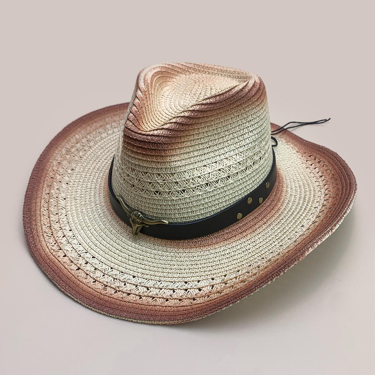 Nuevo cinturón de accesorios de cabeza de vaca a juego de colores sombrero vaquero occidental sombrero de mezclilla hombres y mujeres retro parasol sombrero de paja para exteriores al por mayor