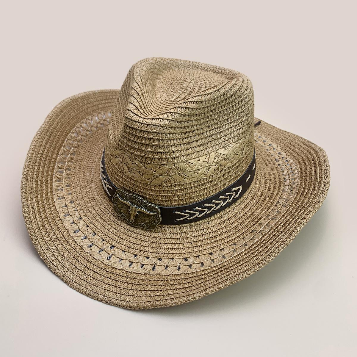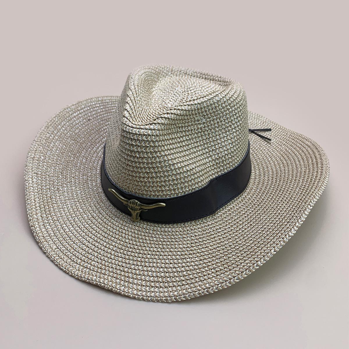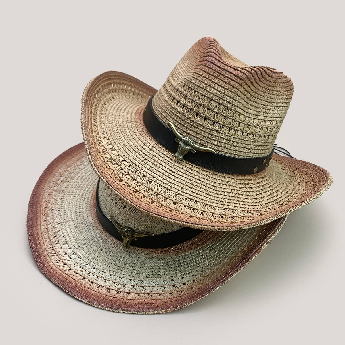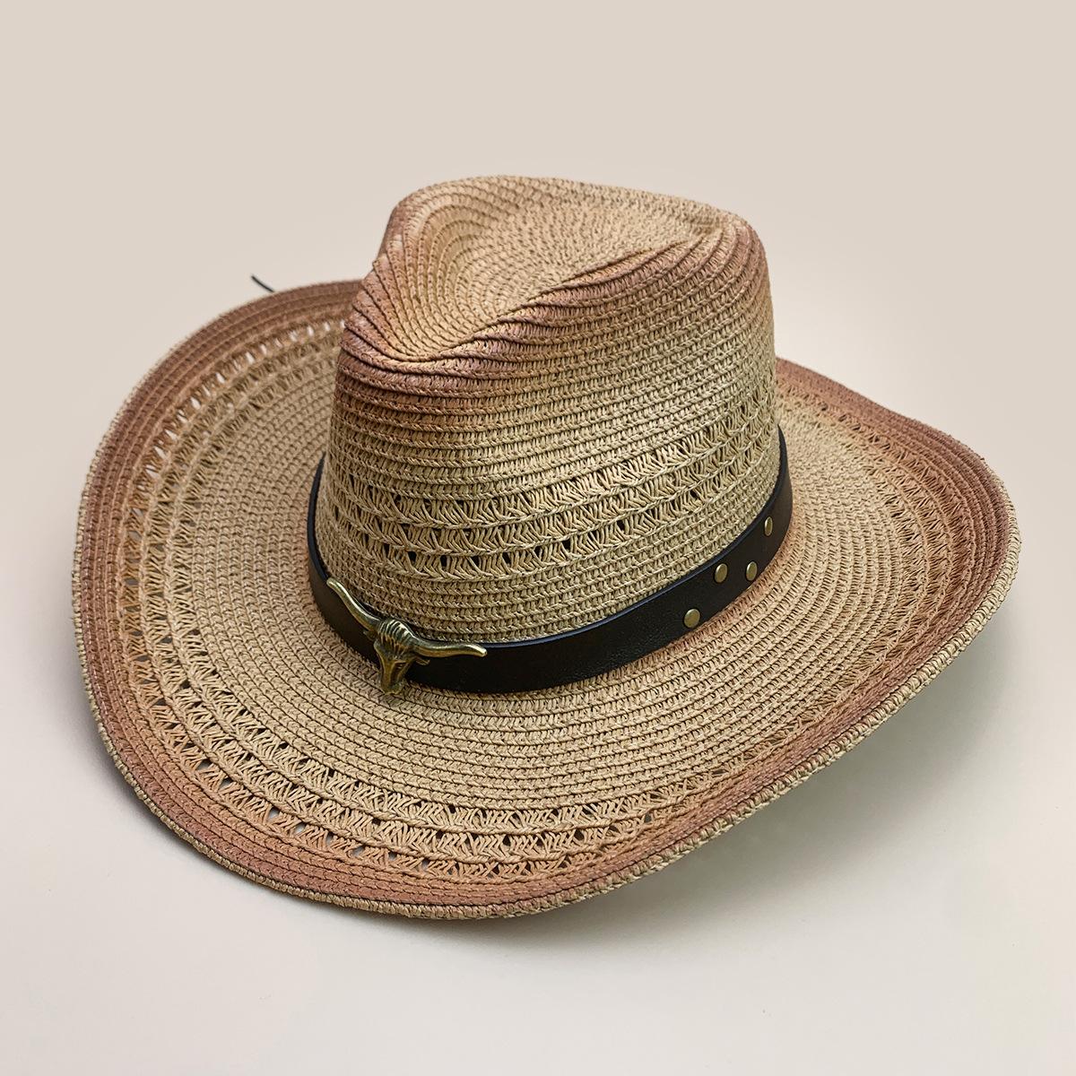 Nuevo cinturón de accesorios de cabeza de vaca a juego de colores sombrero vaquero occidental sombrero de mezclilla hombres y mujeres retro parasol sombrero de paja para exteriores al por mayor