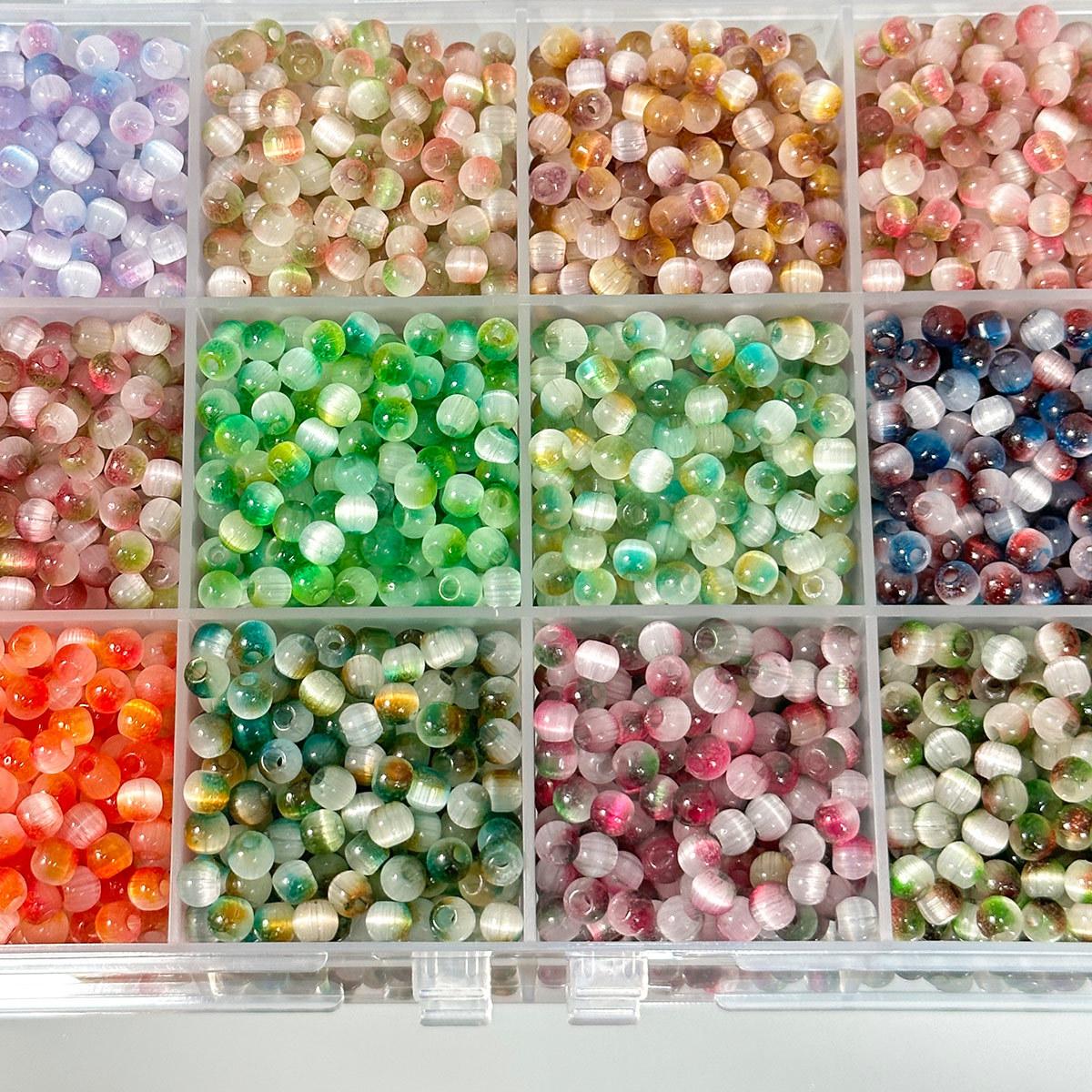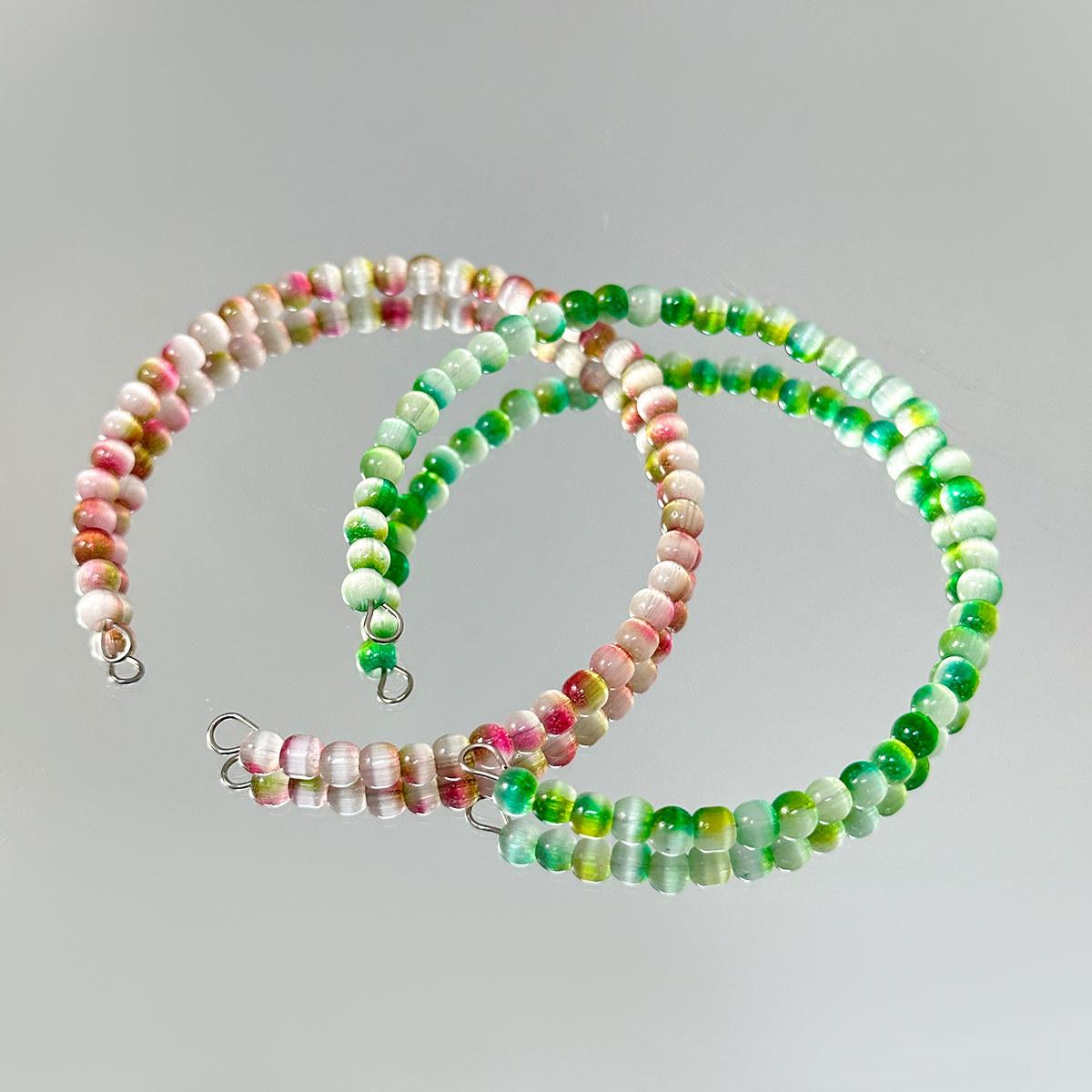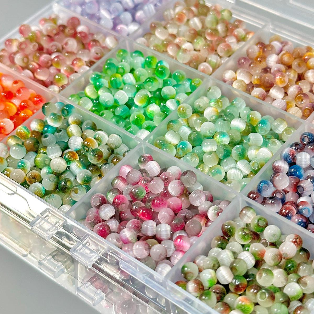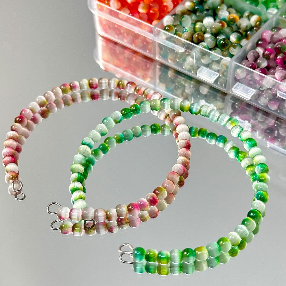 Cuentas de arroz de vidrio de ojo de gato con degradado de dos colores de 4 mm, cuentas hechas a mano para pulseras, collares y accesorios de joyería.