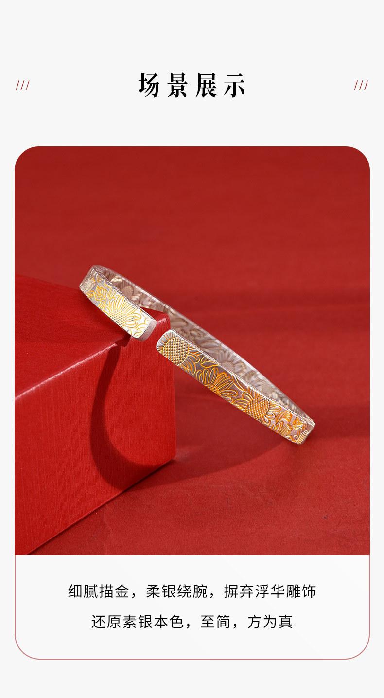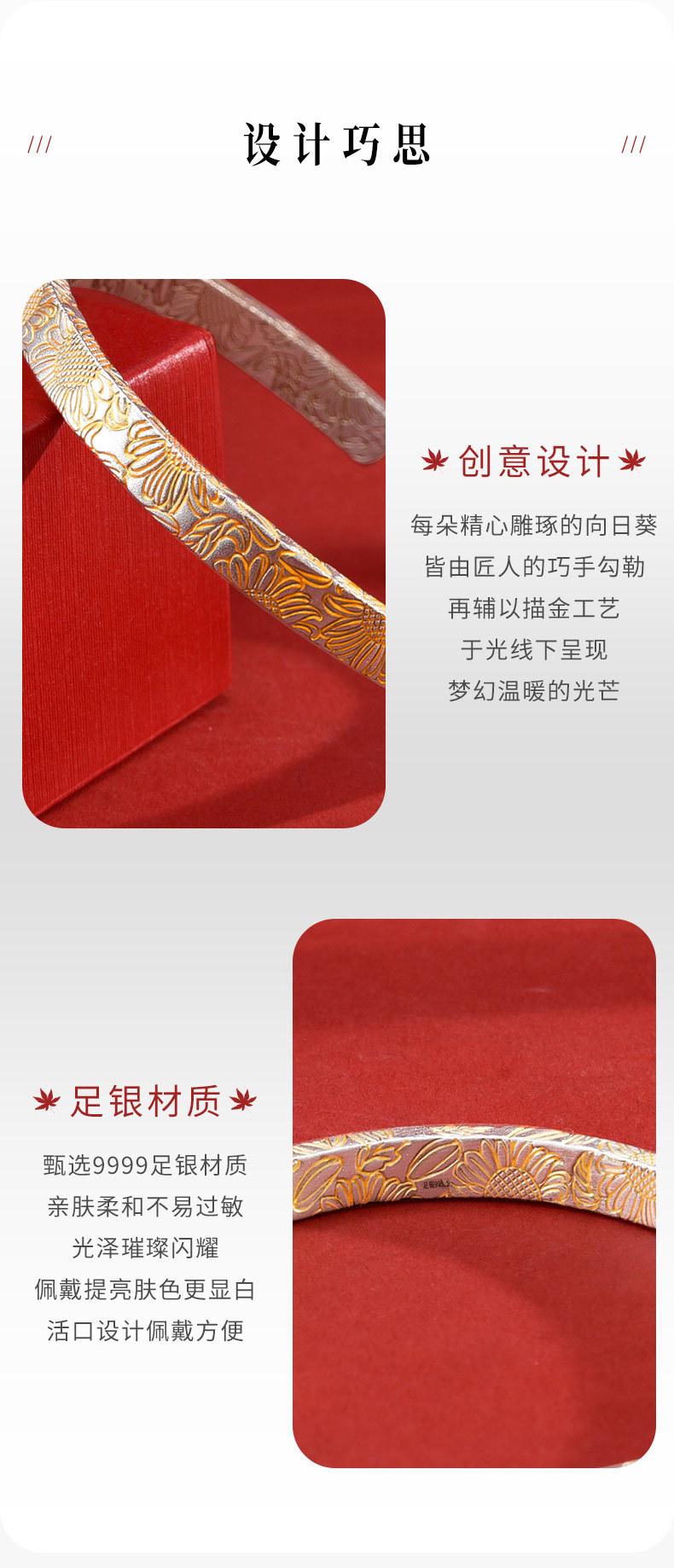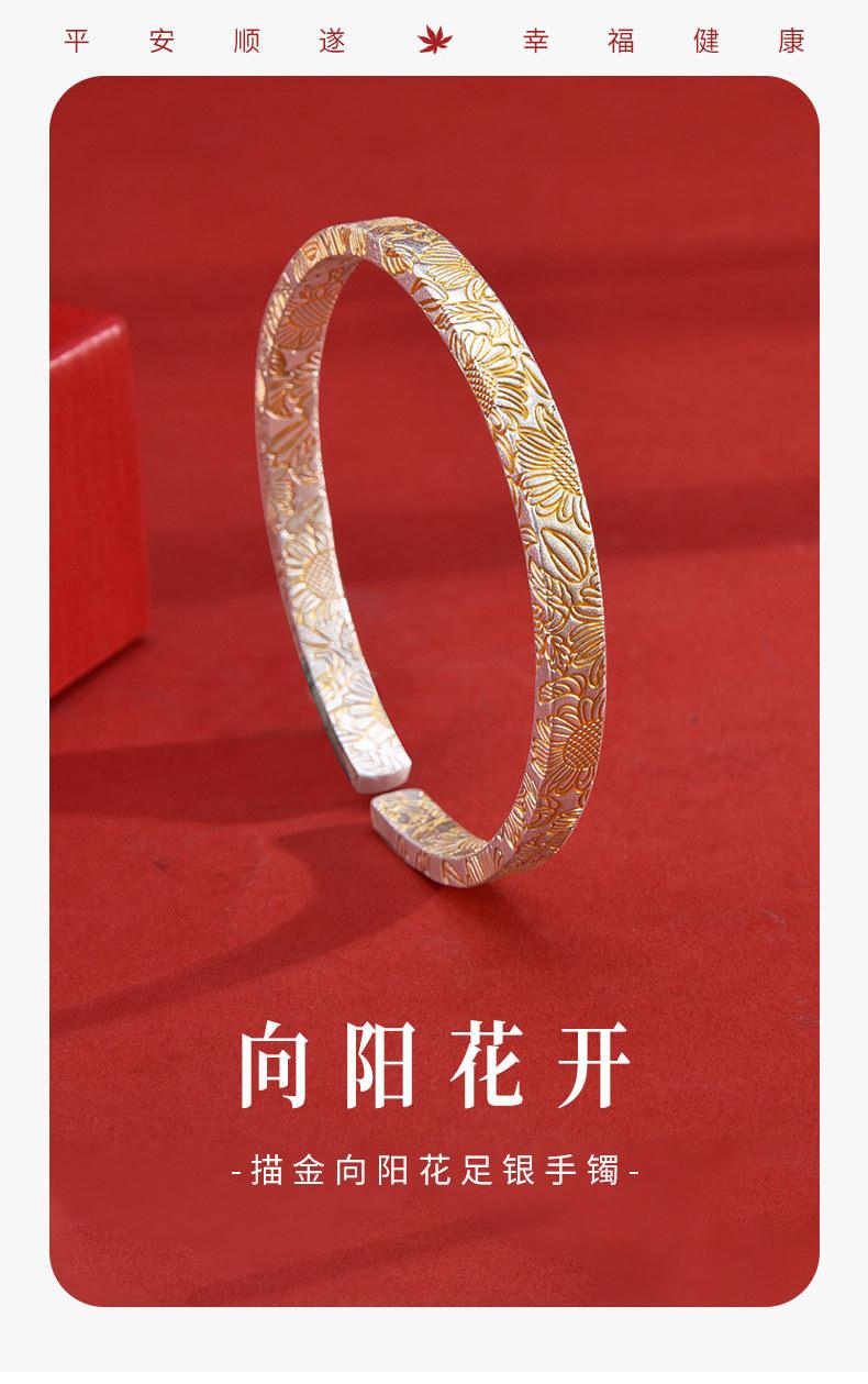 Pulsera de Girasol de Plata Esterlina 9999 para Mujer Estilo Antiguo Guofeng Apertura Pulsera Popular en Internet Girasol de Oro Completo Pulsera de Plata