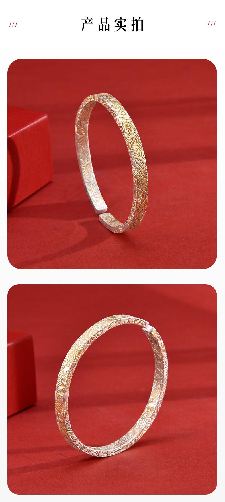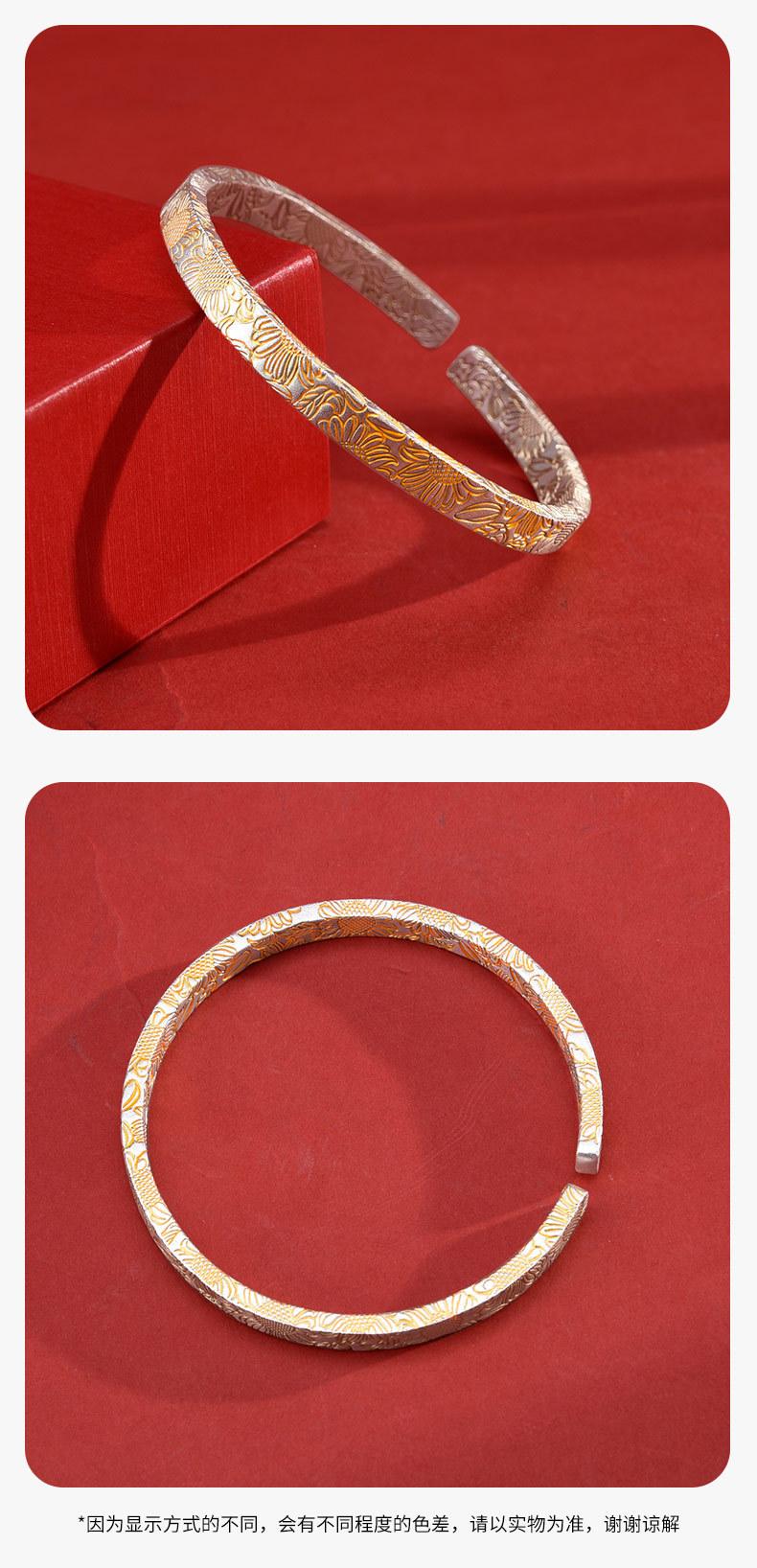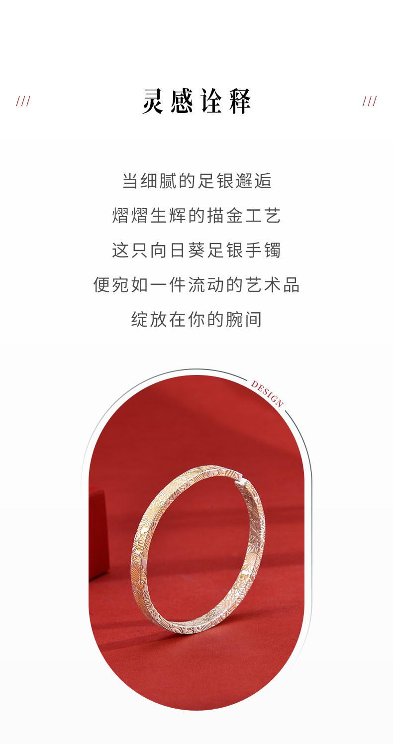 Pulsera de Girasol de Plata Esterlina 9999 para Mujer Estilo Antiguo Guofeng Apertura Pulsera Popular en Internet Girasol de Oro Completo Pulsera de Plata