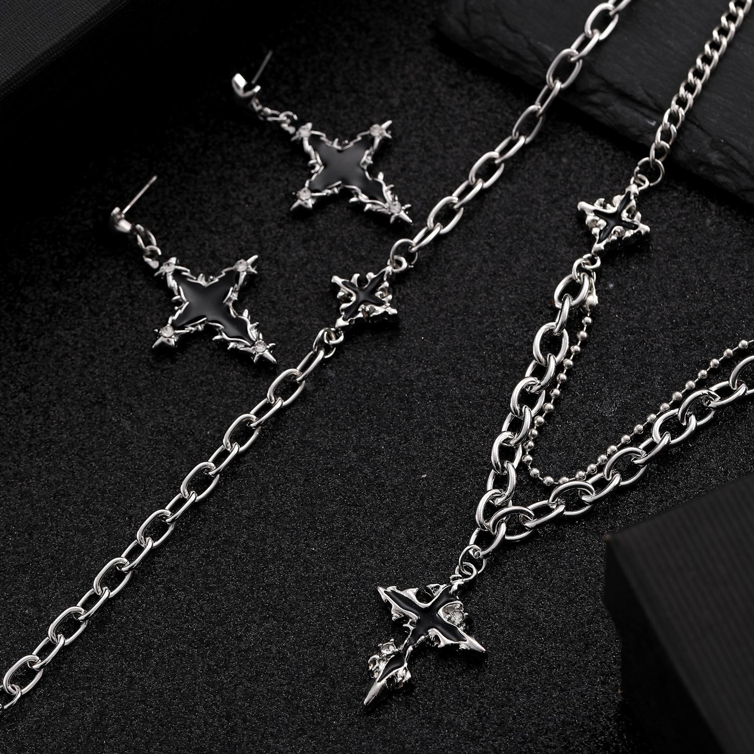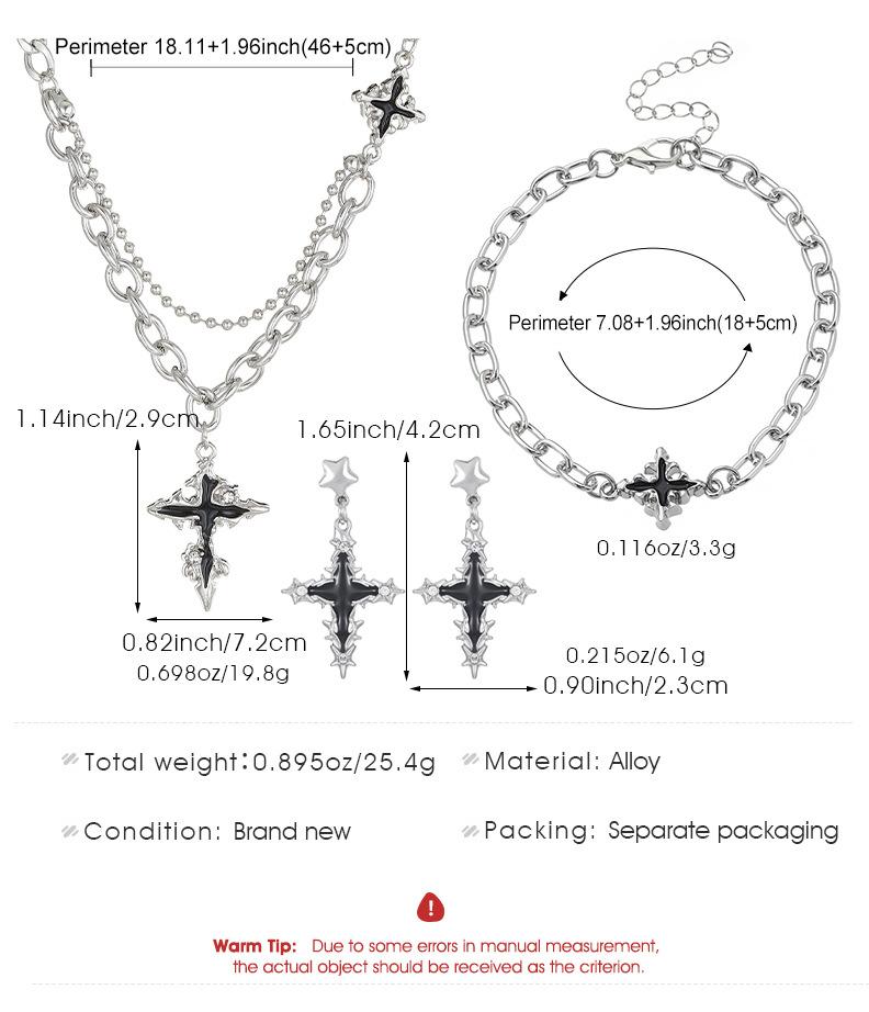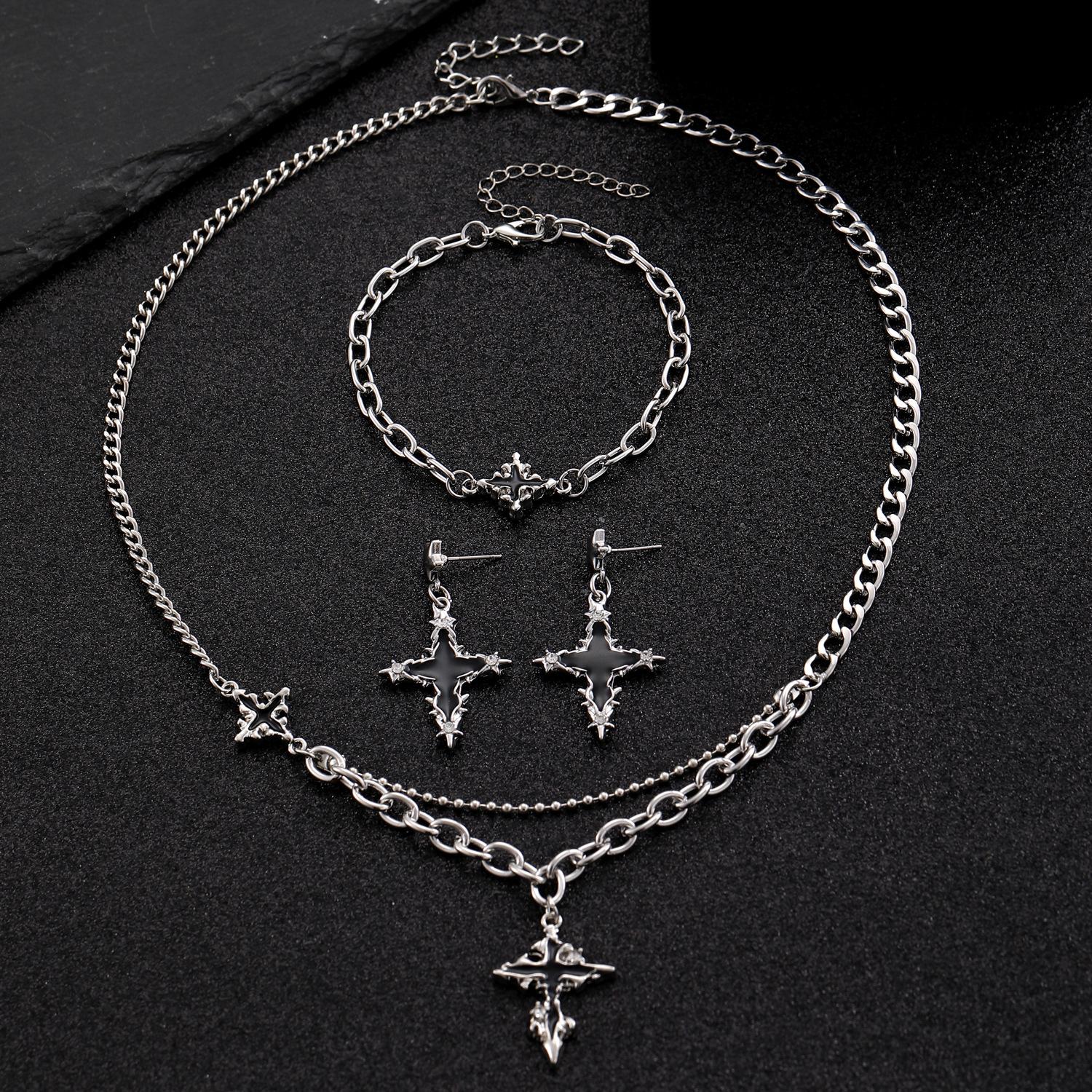 Conjunto de tres piezas de accesorios de estilo frío con cruz negra, cadena, collar, pendientes y pulsera para mujer, ideal para combinar con todo tipo de atuendos.