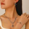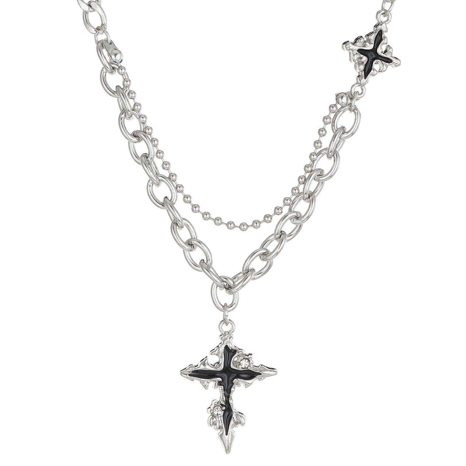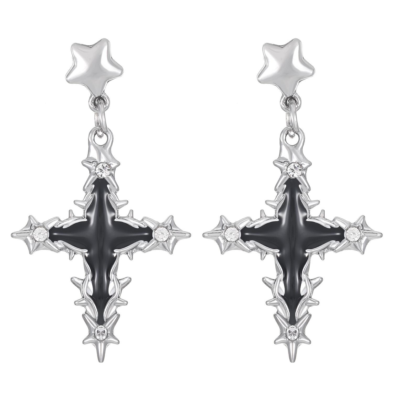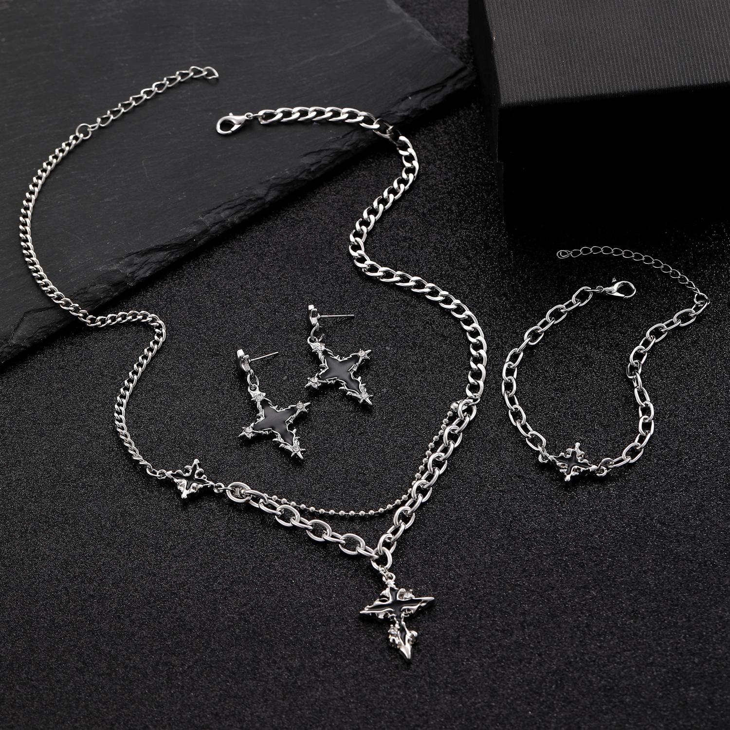 Conjunto de tres piezas de accesorios de estilo frío con cruz negra, cadena, collar, pendientes y pulsera para mujer, ideal para combinar con todo tipo de atuendos.