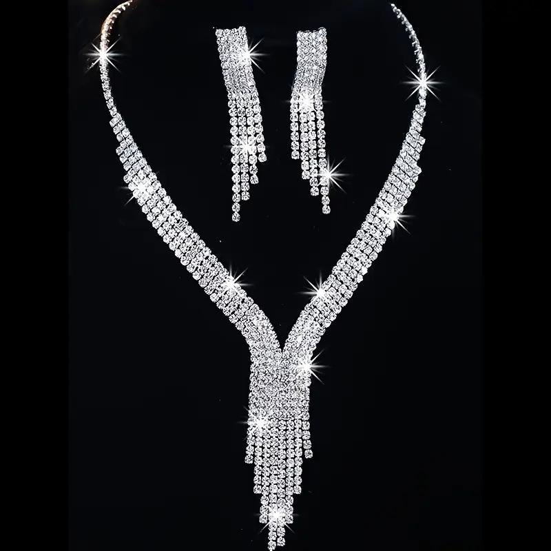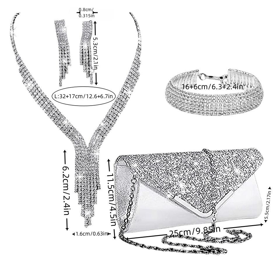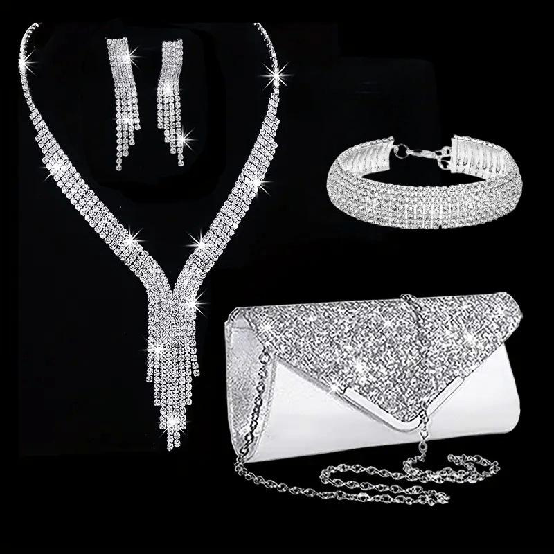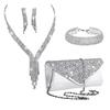Moda Europea y Americana Novia Joyería Borla Diamante Completo Lujo Banquete Aretes Collar Pulsera Bolso de Cena Vestido Traje